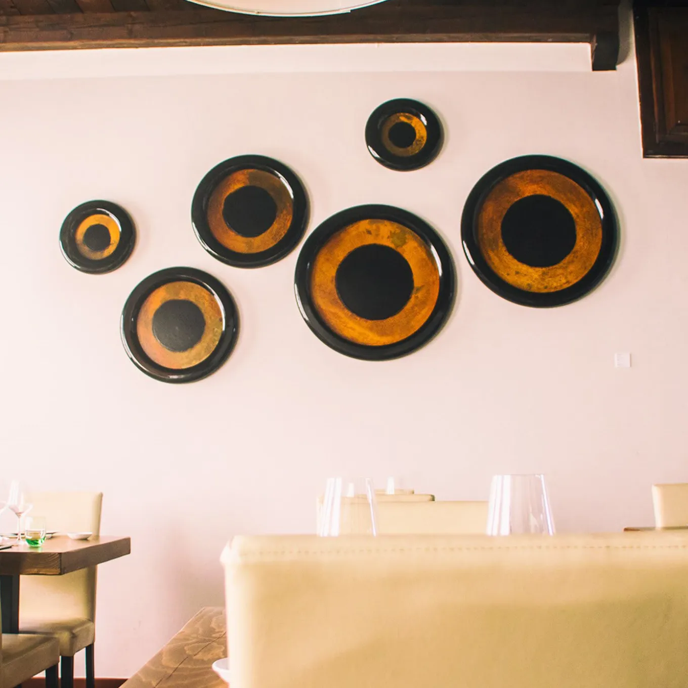 Stylish and unusual, the Hypnosis is an original modular work available in 4 sizes to compliment large or small environments. The central eye is an oxidized iron plate where the unique oxidation process brings out a bright orange color on the iron, providing fabulous contrast and ensuring that each piece is distinctive. The exquisite surrounding frame is crafted from wood.