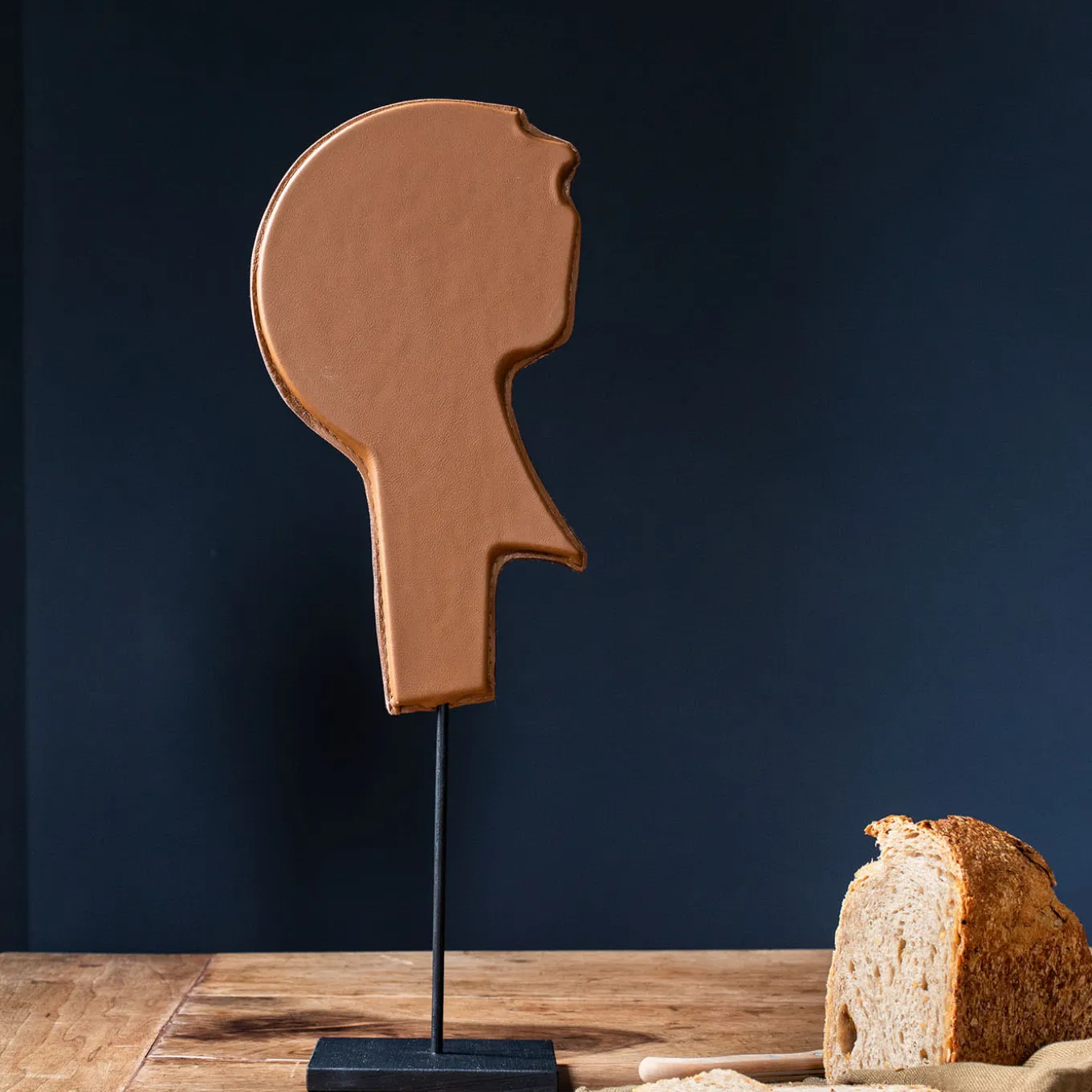 Il Capo Sculpture exemplifies a refined blend of artistic expression and functional decor. Influenced by evocative forms, this striking piece is crafted from luxurious leather, showcasing a unique silhouette that captivates the eye. Set upon a sturdy black metal base, the sculpture achieves a harmonious balance, inviting contemplation and adding a sophisticated touch to any space. Each piece is meticulously constructed and stitched, establishing a subtle connection with the environment and its observer.