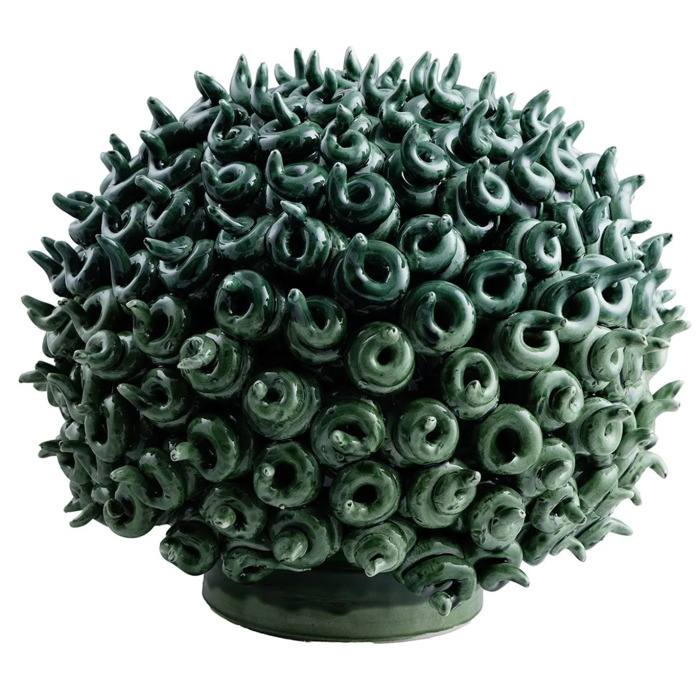 A striking centerpiece showcasing iridescent green curls in a captivating glossy green finish. Crafted from fine ceramics, this piece combines artistic elegance with color, making it a standout addition to any interior décor