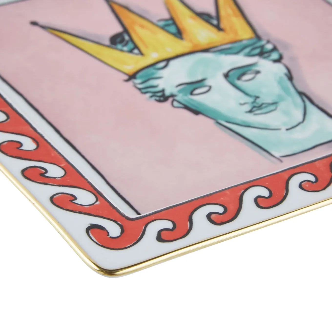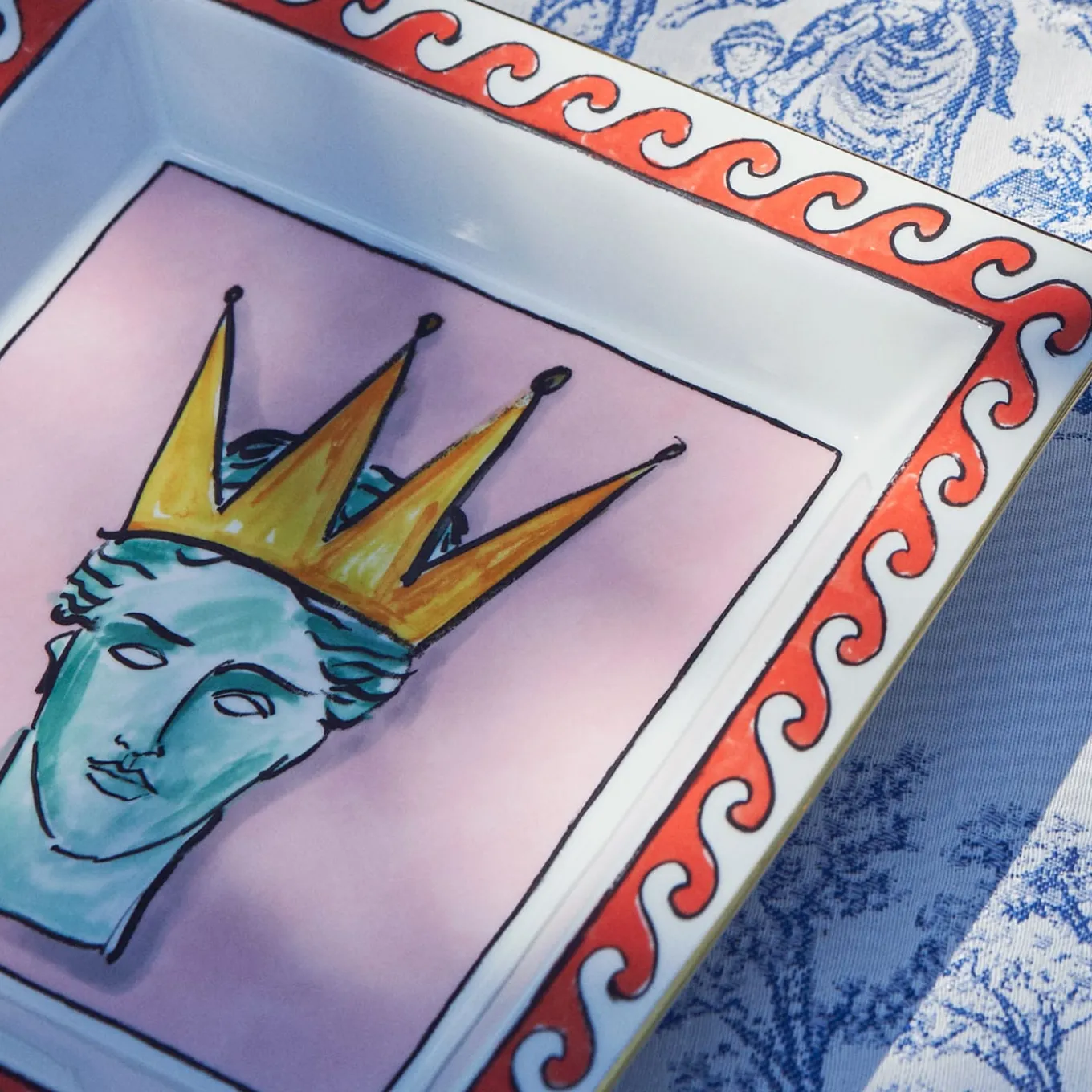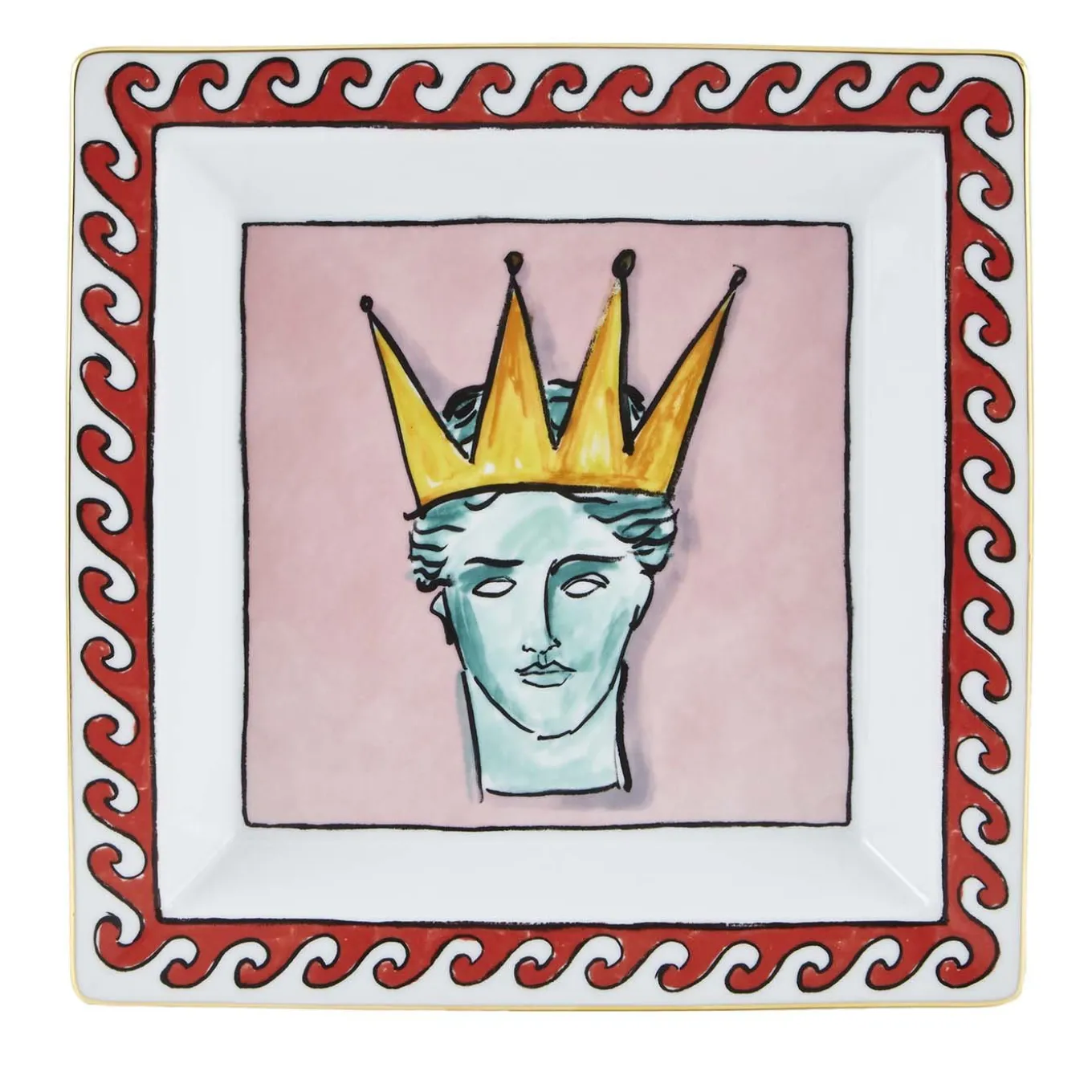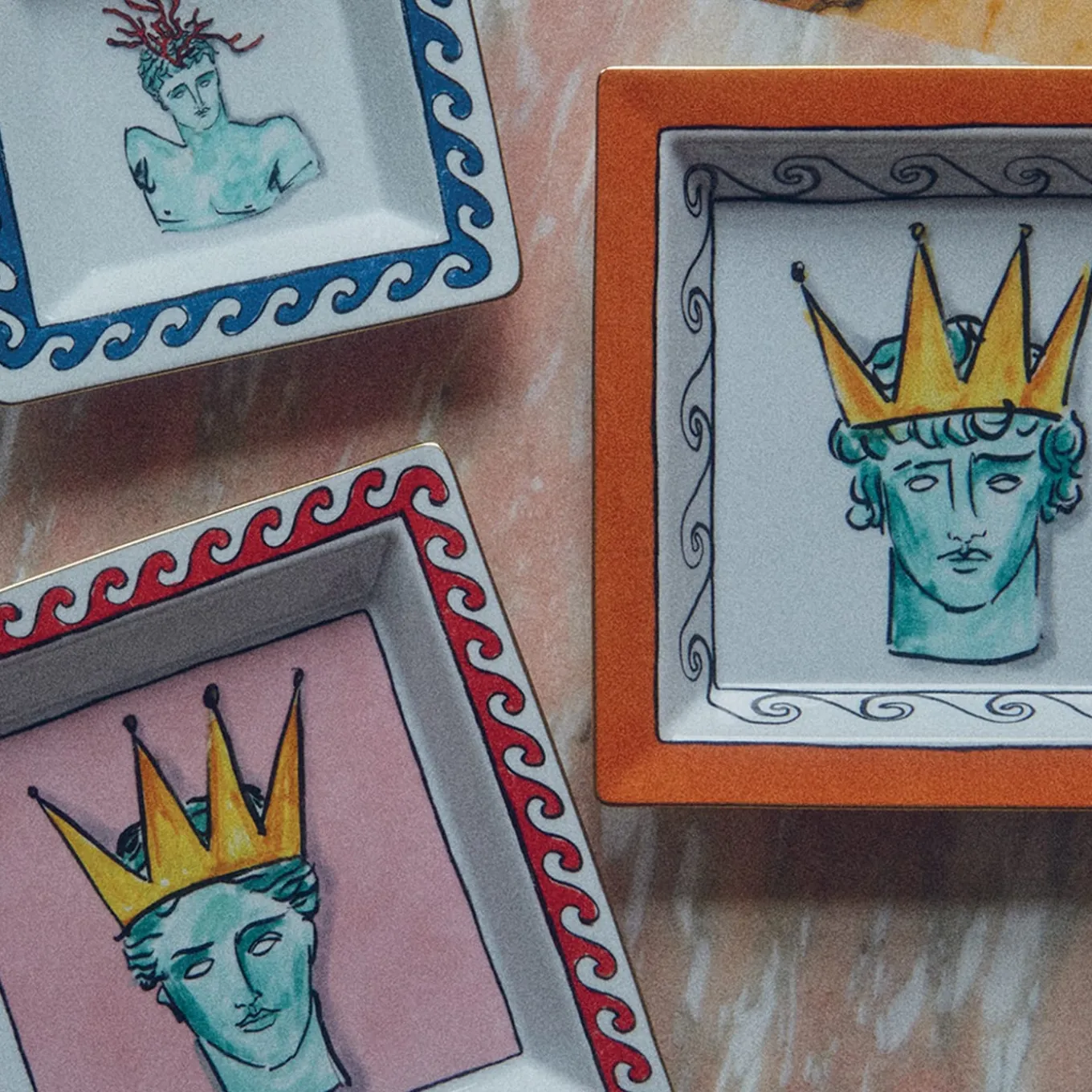 Part of an exclusive collection designed by Luke Edward Hall, this elegant vide poche is crafted of fine porcelain and adorned by hand with precious metals. Its striking use of color and modern aesthetic interprets ancient Greek and Roman mythology in an elegant balance between functionality and aesthetic, classic sophistication and modern innovation.