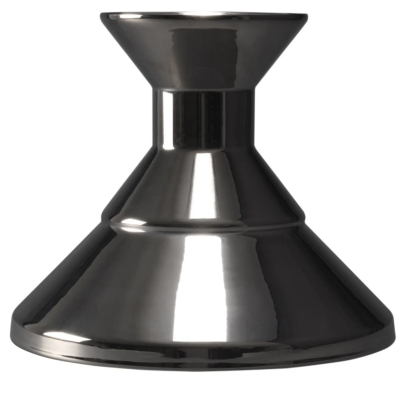 This elegant ceramic vase features a geometrical and minimalist shape with two connected cones of different sizes with a platinum finish.