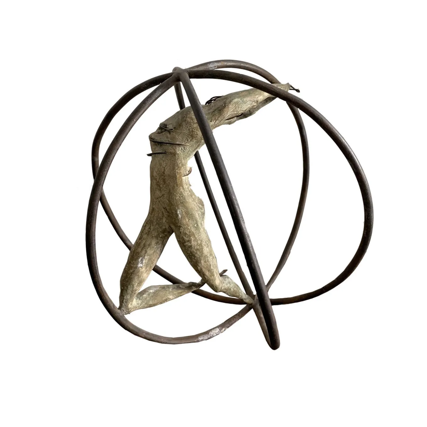 Embodying the perfect harmony between traditional craftsmanship and contemporary artistic sensibility, this sculpture is one of the artist’s most appreciated works. Crafted by hand with the ancient lost wax method, the two mirroring figures are fashioned of bronze and elegantly dance in an iron sphere that can be rotated and moved, creating changing and unique sculptures.