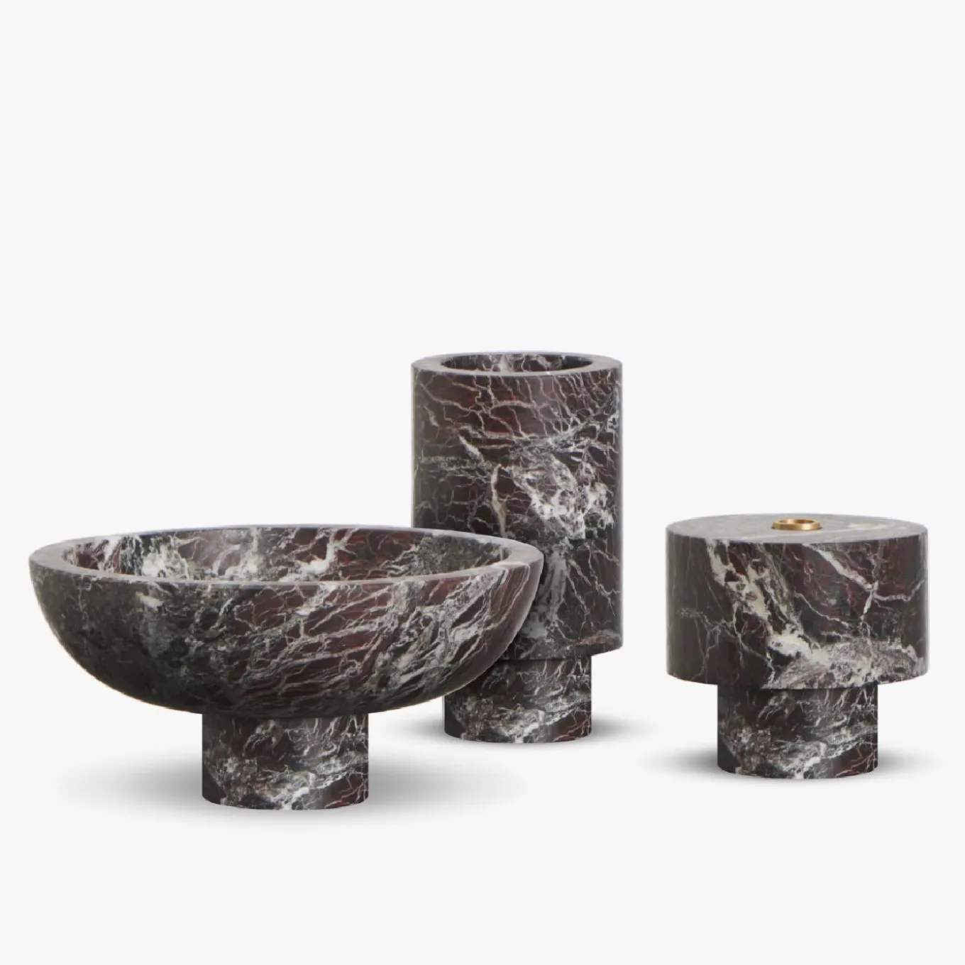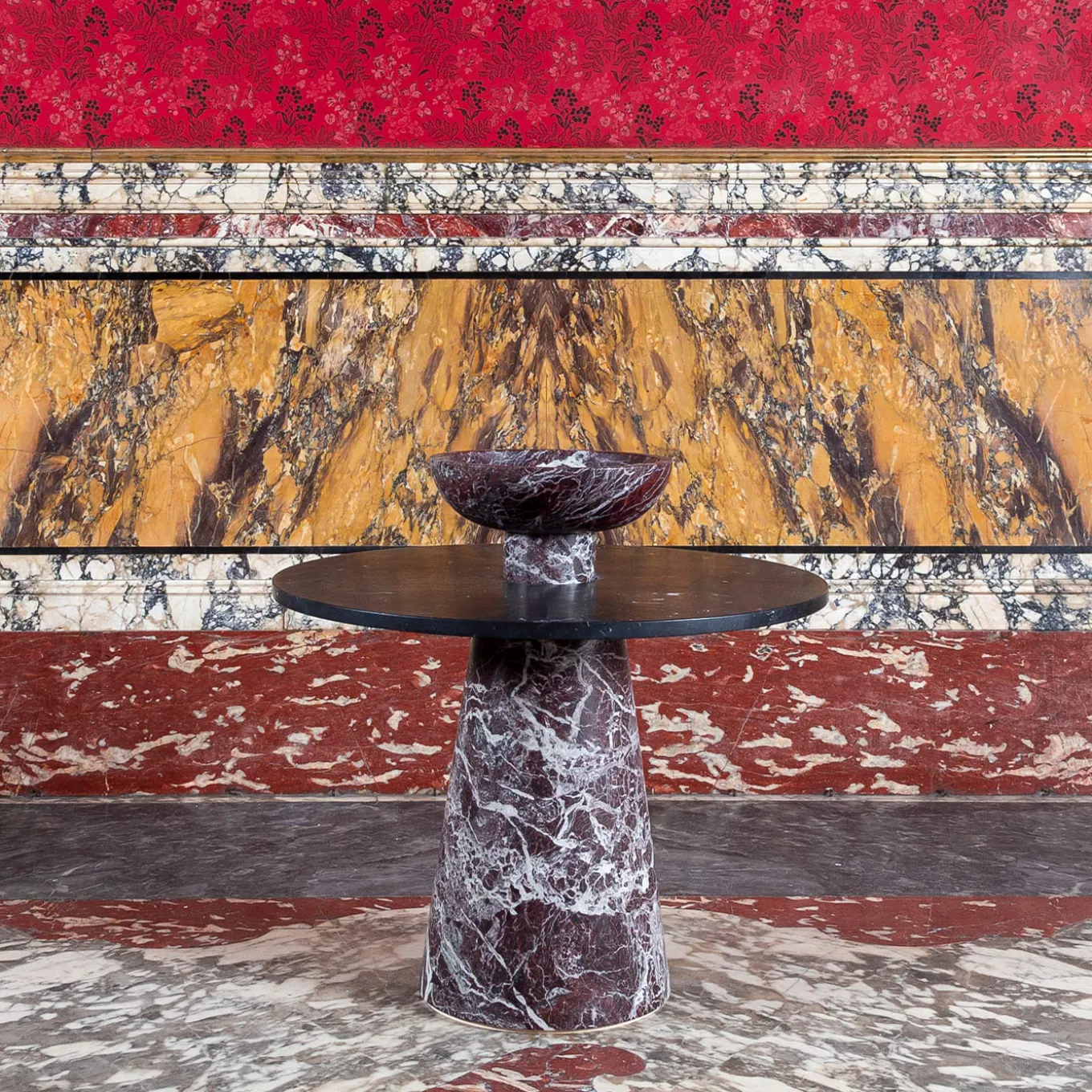 Fashioned of prized red Levanto marble – distinguished for its eccentric veins – this remarkable centerpiece is the epitome of contemporary chic. Karen Chekerdjian designed it to be fitted into the tabletops from the same Inside Out Collection, though its footed base makes it suitable as a freestanding accent piece. This centerpiece will be the focal point on a kitchen counter or dining table. Please note that marbles and stones are natural materials and they can differ also if coming from the same quarry or the same block. The product shown may differ from purchased items. Every piece is unique.