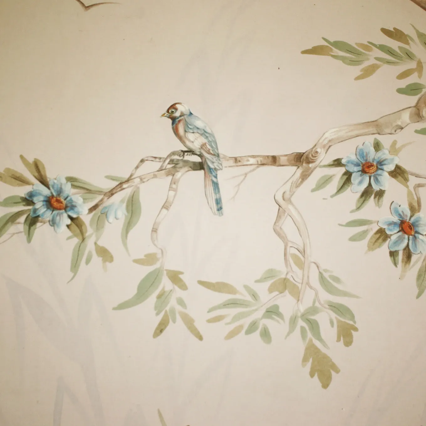 This superb wallpaper was painted by hand on paper and is a one-of-a-kind. The leaves are painted freehand, while the rest of the painting, with its delicate and slender branches and its soft soil accented with stones, is executed over a drawing underneath. This sophisticated subject is a mix of east and west: its eastern style composition is rendered according to the western taste. This piece is accompanied with instructions for its installation. Its colors and sizes can be customized. The piece shown in photo is: 400×300 cm. Price is per square meter. Please ask our Concierge for details.