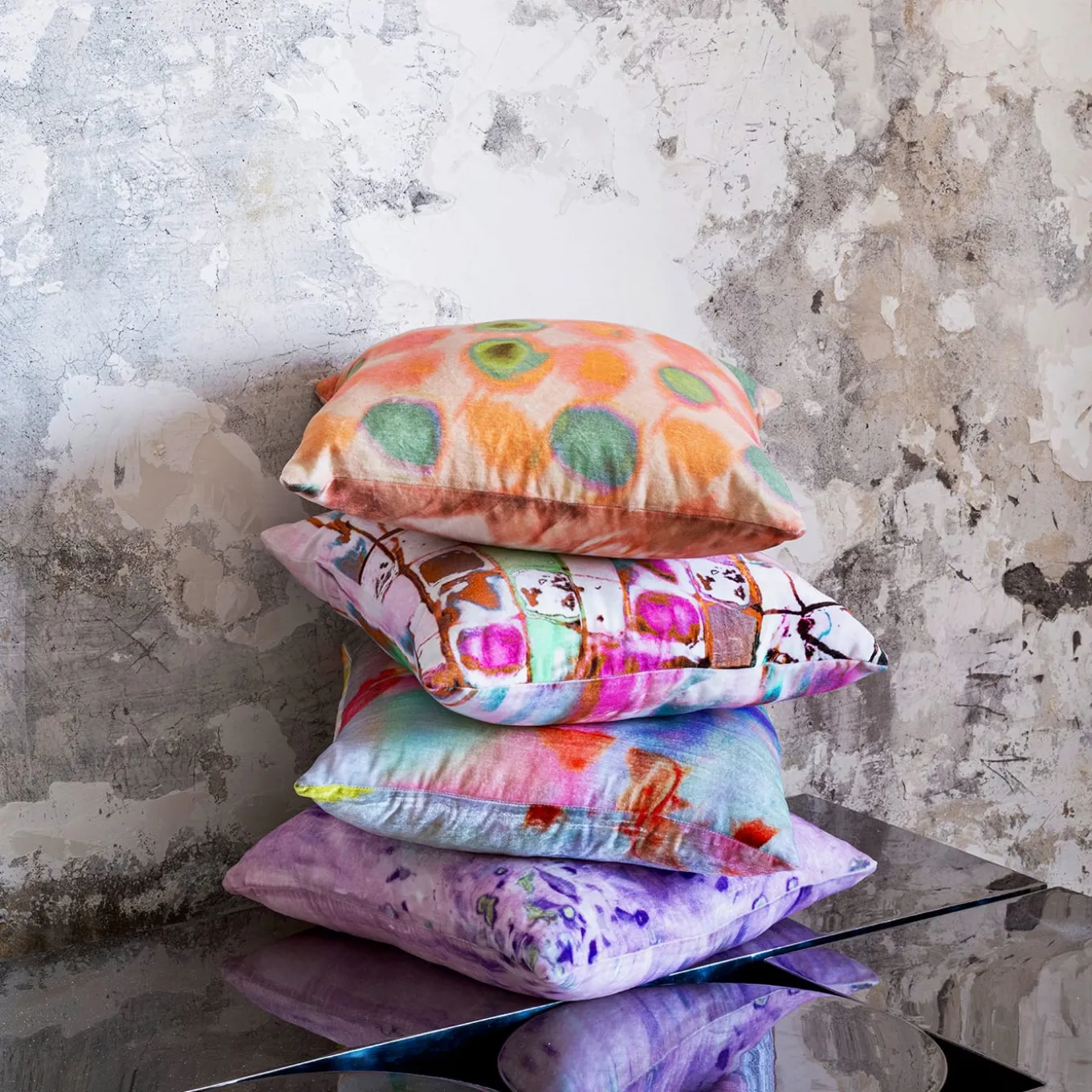 This cushion is a celebration of creativity and vibrant imagination. Crafted from luxurious silk velvet, it bursts with daring color combinations, offering a sophisticated yet modern touch. Part of the “dreamy” collection, this cushion features abstract, soft, and colorful drawings, adding a touch of elegance and contemporary style to any space. Filled with soft natural Kapok, it guarantees unparalleled comfort and gentle support.