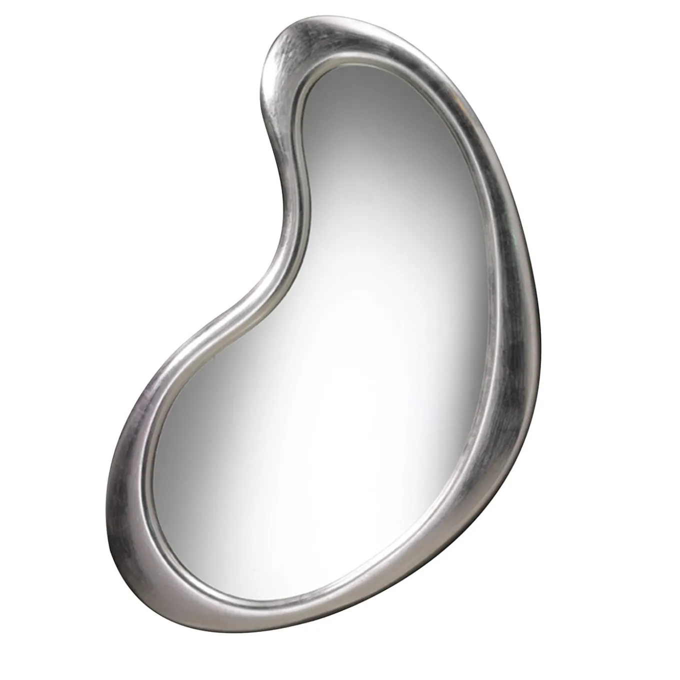 Sinuous profiles tracing the contours of a captivating fluid-lined silhouette define this elegant wall mirror of unmistakable contemporary inspiration. Crafted of MDF, the frame comes ennobled by a luxurious silver-leaf coating that produces a mesmerizing sheen. Glamorous and sculptural, the piece is ideally positioned in sophisticated entryways or bedrooms.