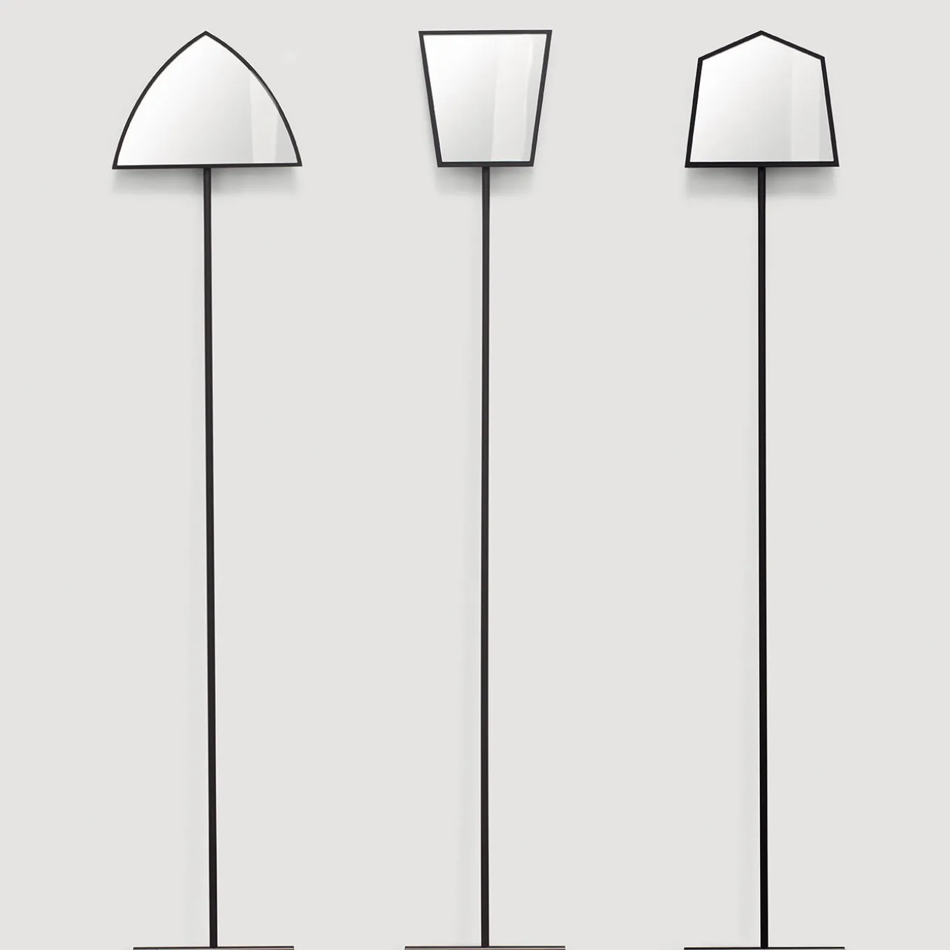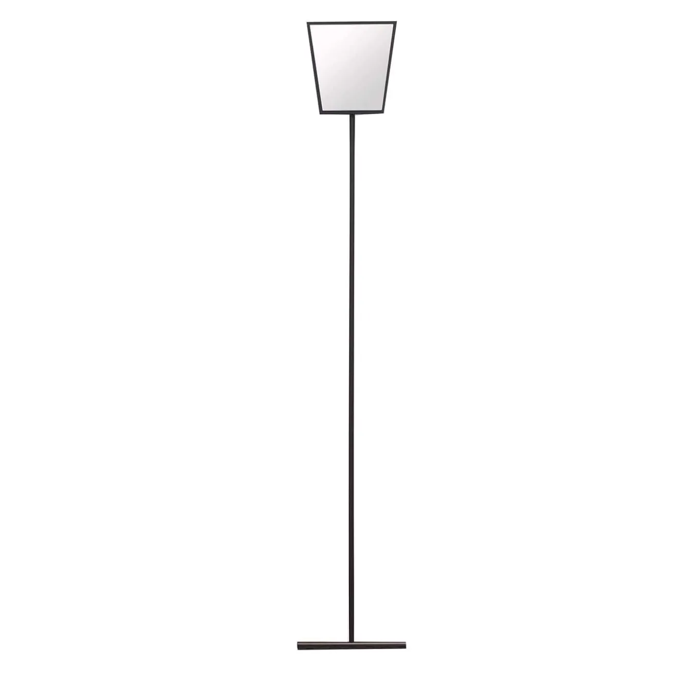 Minimalist and elegant, this striking mirror boasts sleek, geometric lines that will add a unique character to any wall. The delicate but sturdy structure that sustains and frames the mirror is fashioned of aluminum with a cylindrical shape and black finish. A stylish addition to an entryway, office, or eclectic bedroom, this unconventional design simply leans on the wall without the use of hardware.
