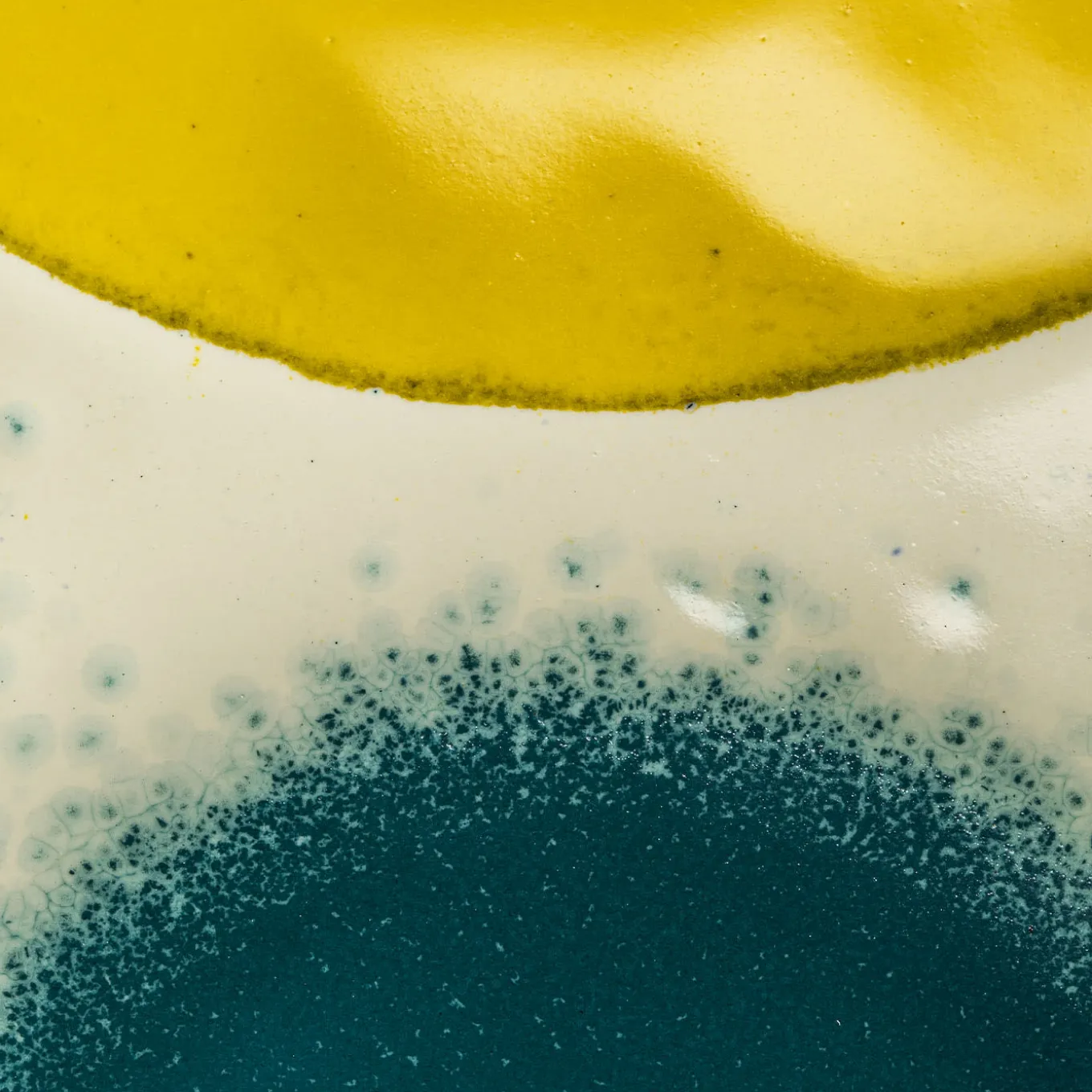 Collection of decorative plates made using the technique of fire enamel on copper. The colors and motifs come from a visit to the Guggenheim Museum in New York, while the technique is a tribute to Italian design from the 1950s, 1960s, and 1970s. The back is enameled and covered in hand-stitched dark brown leather.