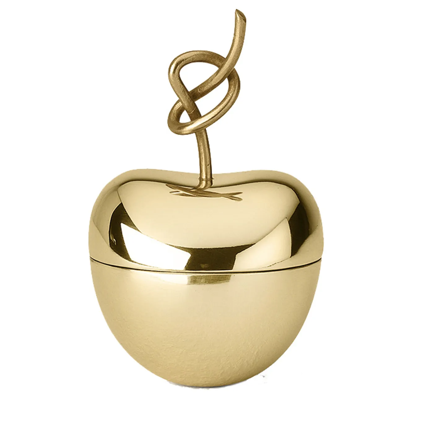 This exquisite box will be a precious addition to any home and can be a charming gift. Entirely made of brass with a polished finish, this versatile piece of functional decor is shaped like an apple with a lid whose handle is shaped in the form of a knotted stem. Either used as a decorative piece or to store everyday trinkets in a living room or entryway, this precious piece will enhance the look of any home.