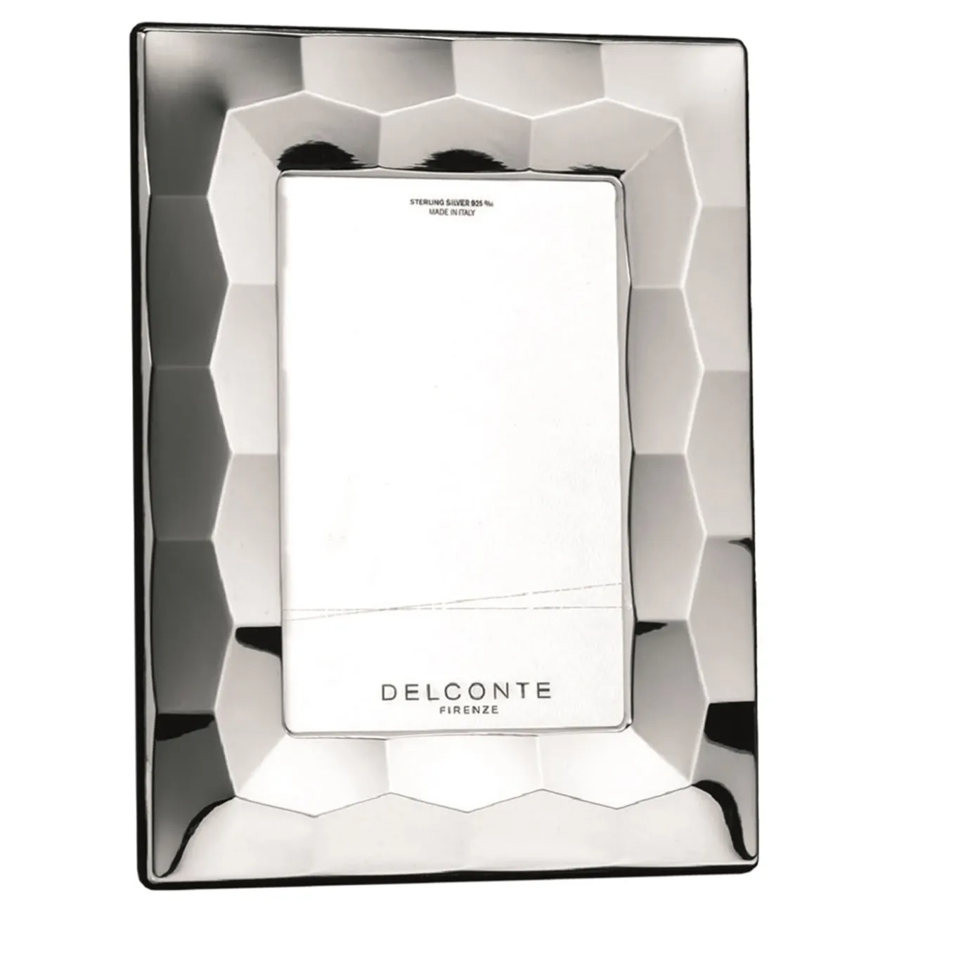 The glaring look of this sterling silver 925 frame lends it eccentric quality without renouncing elegance. Photographs (13x18cm) of precious moments will be splendidly enhanced by its faceted texture, producing light reflections that chase each other through captivating interactions. The frame is 4cm wide and features a rear side with a supporting element fully covered with natural leather. Please contact the Concierge for size variants and pricing.