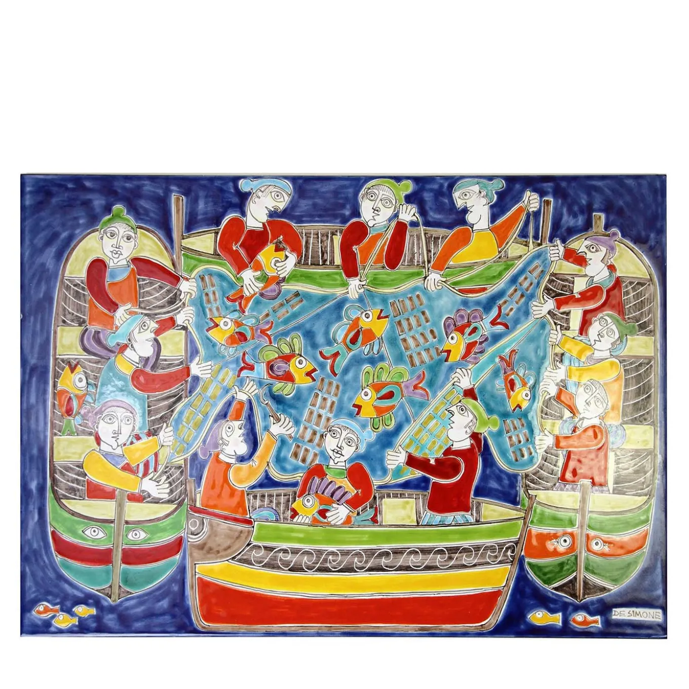 With a magnificent depiction of traditional Sicilian tuna fishing, known as La Mattanza, this expertly crafted and beautifully hand painted panel will make a fine addition to any contemporary decor. Measuring 40 x 60 cm, the high quality ceramic furnishing accessory will add character and color with its vibrant scene.