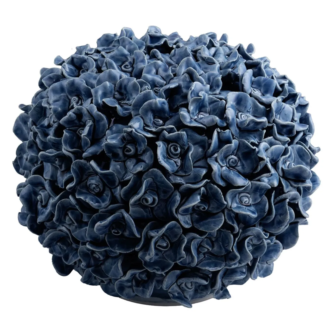 A striking large centerpiece showcasing open roses in a captivating glossy blue finish. Crafted from fine ceramics, this piece combines artistic elegance with bold color, making it a standout addition to any interior décor.