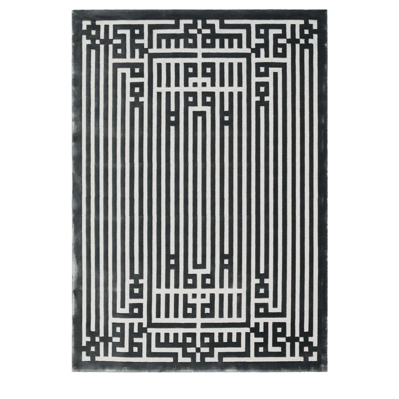 Hypnotizing thanks to its intricate and elegant geometric design reminiscent of a labyrinth, this rectangular rug is a concrete celebration of manual tufting from New Zealand Wool and Tencel. A combination of gray tones further stresses its timeless refinement, suggesting the piece as spot-on addition to elegant contemporary interiors. Please explore available tailor-made options with the Concierge.