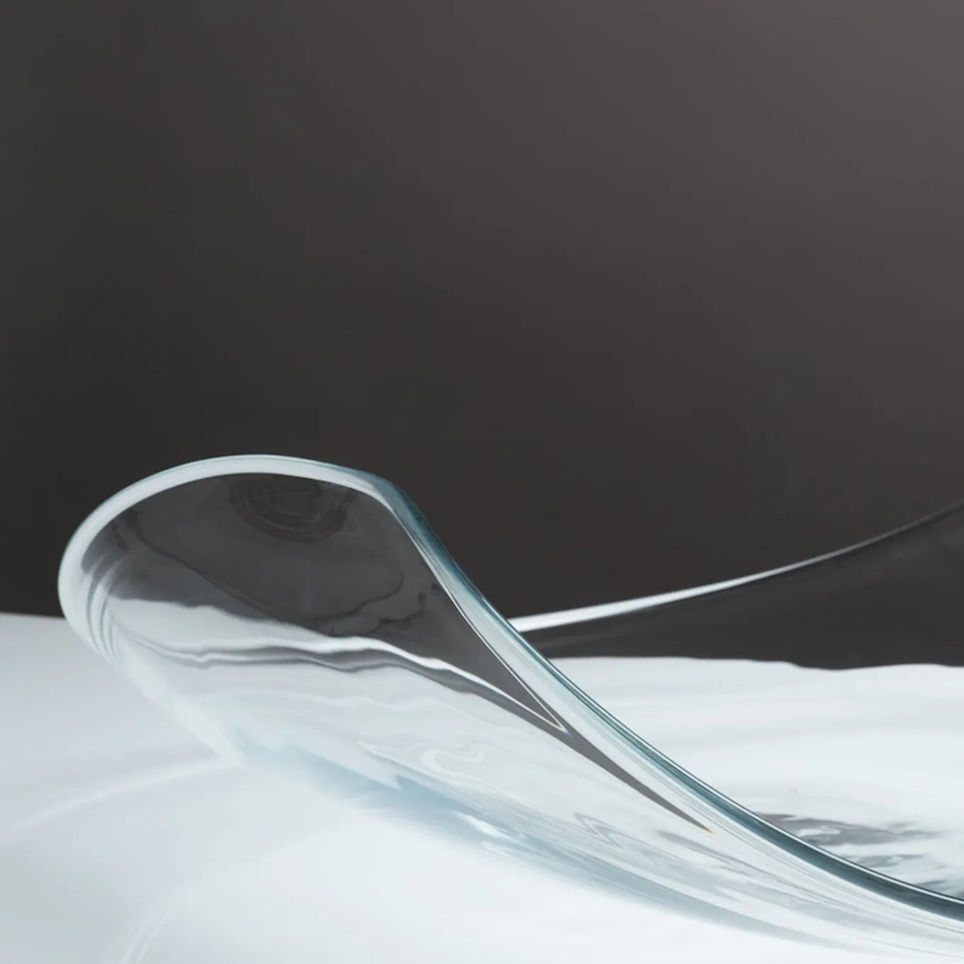 Stua is the new centerpiece from the Laguna collection designed by Ludovica+Roberto Palomba for Purho in spring 2023. Characterized by organic shapes inspired by the rounded and harmonious profile of shells, Stua -which in Venetian dialect refers to a type of shell- enhances the transparency and suggestion of Murano glass through the formal simplicity and linearity of the artifact: a glass disc folded with grace and apparent simplicity translated in a functional and decorative object.