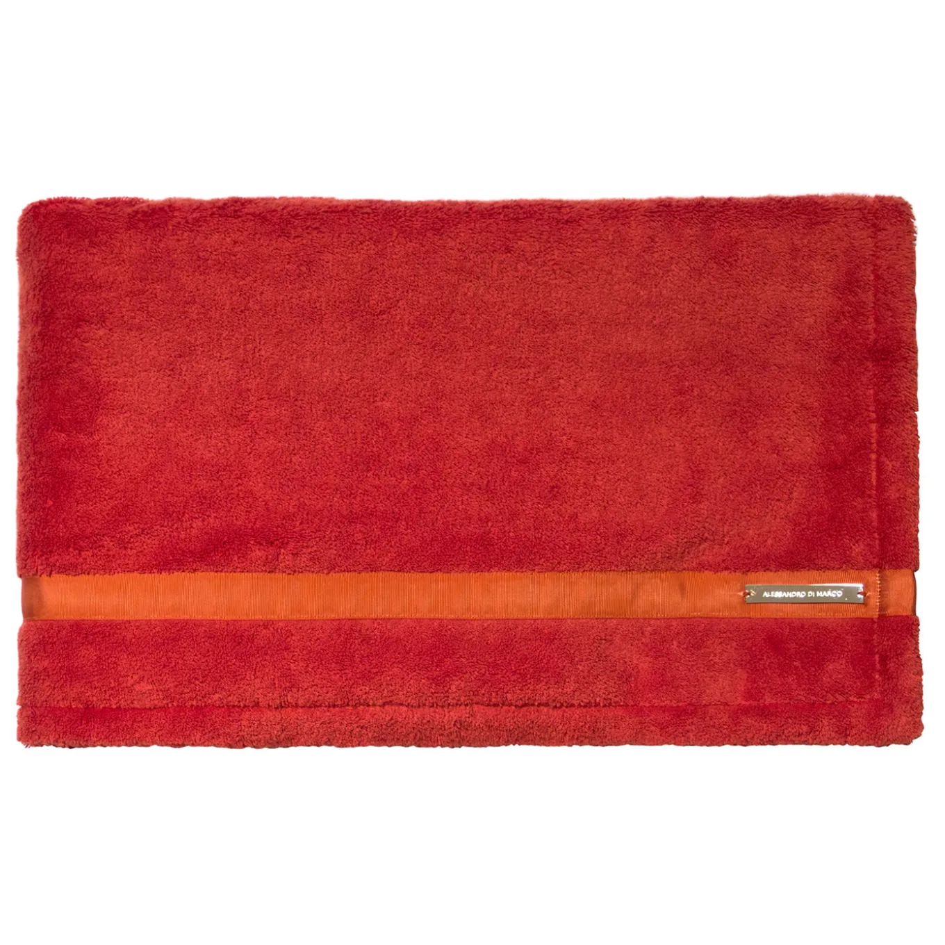 This elegant bath towel set comes complete with 2 small size, 2 medium size, and one large towel in Orange and Beige 100% soft Egyptian cotton with hand stitched borders, accented by ribbons in light Orange satin. Metal logo plate has been embossed and sports an 18K gold finish.