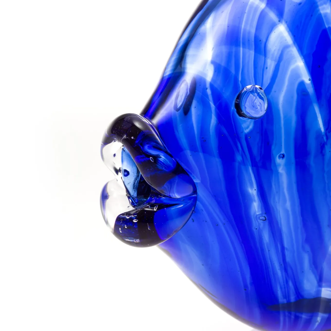 The large Murano Fish by Catherine Urban is a stunning representation of the esteemed Murano glassmaking tradition. This vibrant glass sculpture showcases a blend of artistic expression and craftsmanship, characterized by playful color nuances that enhance its radiant surface. Available in a large size, this figurine serves as a captivating decorative object, ideal for accentuating tables, desks, or consoles. Its unique design features a mouth, adding a lifelike charm to the piece. Each sculpture, crafted from robust Murano glass, embodies the essence of elegance and sophistication, making it a remarkable addition to any home décor collection.