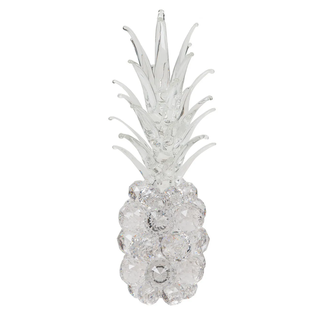 This splendid crystal sculpture is masterfully handmade using traditional crafting techniques. Boasting a sleek yet charming profile, its pineapple-shaped silhouette will add a luminous accent to a modern and elegant decor. A stunning decorative piece, the unconventional shape and vibrant colors enhance its singular allure.