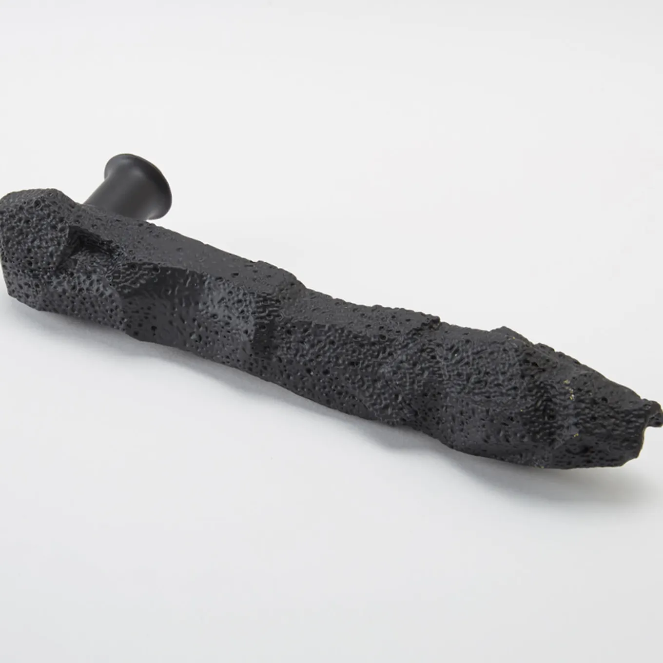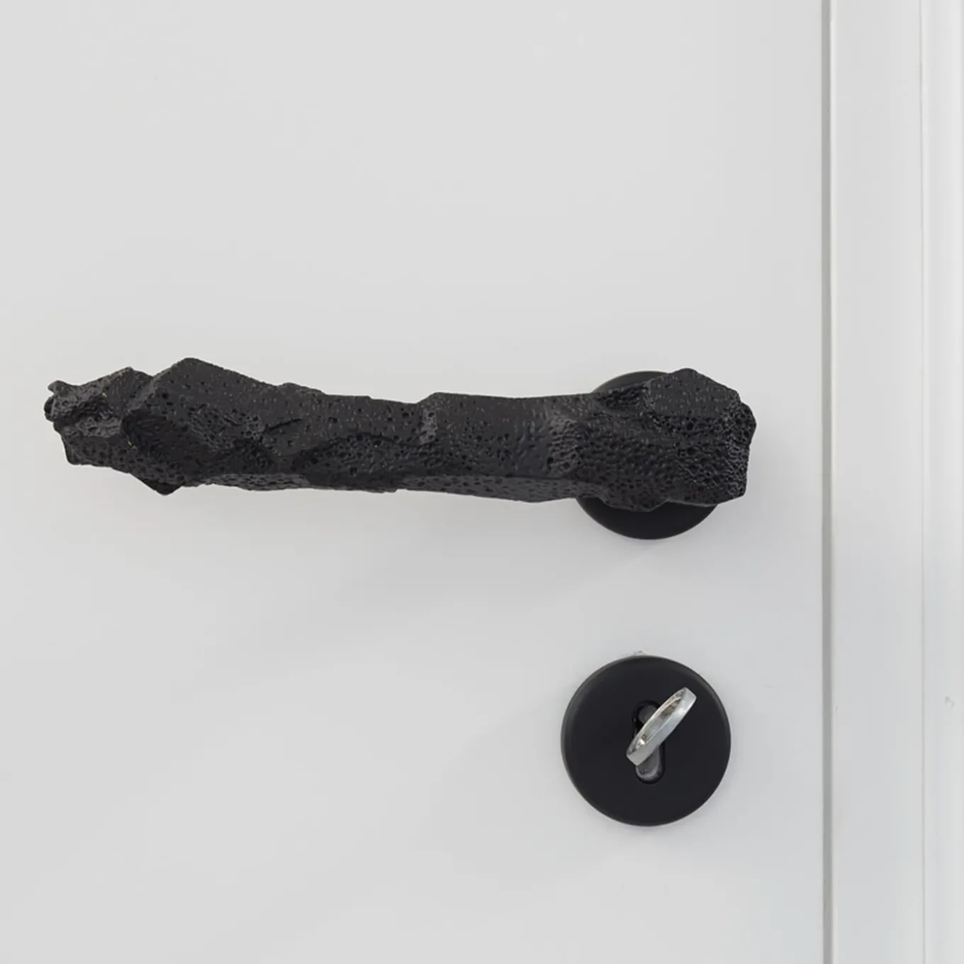 Part of the Lavica series of door handles that minutely reproduces the stunning allure of lava stone, this precious handle is deftly handmade of black-finished aluminum boasting a textured, porous surface of striking visual impact. Designed by Nicole Valenti, it will add a singular accent to any decor.