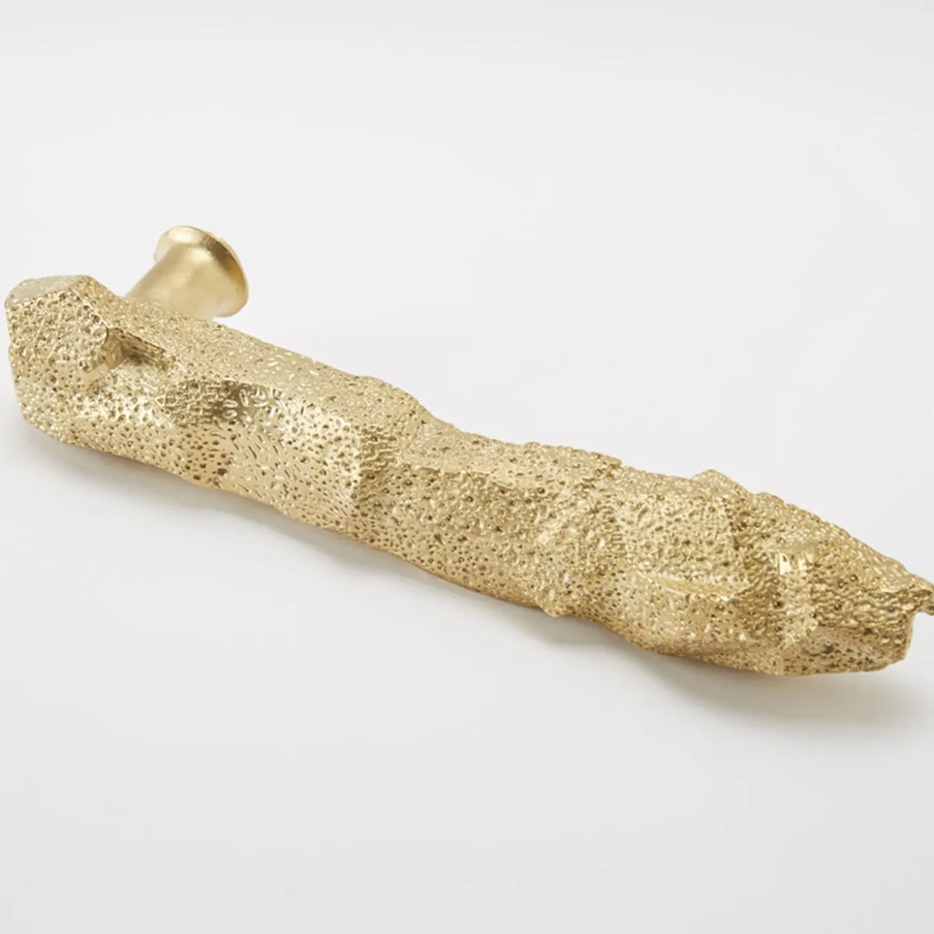 A precious and refined design of unparalleled charm, this door handle is entirely handmade of natural brass boasting a lavish and polished allure. Strikingly shaped like a volcanic stone, it will add a singular and stately accent to a contemporary interior. It belongs to the Lavica series designed by Nicole Valenti.