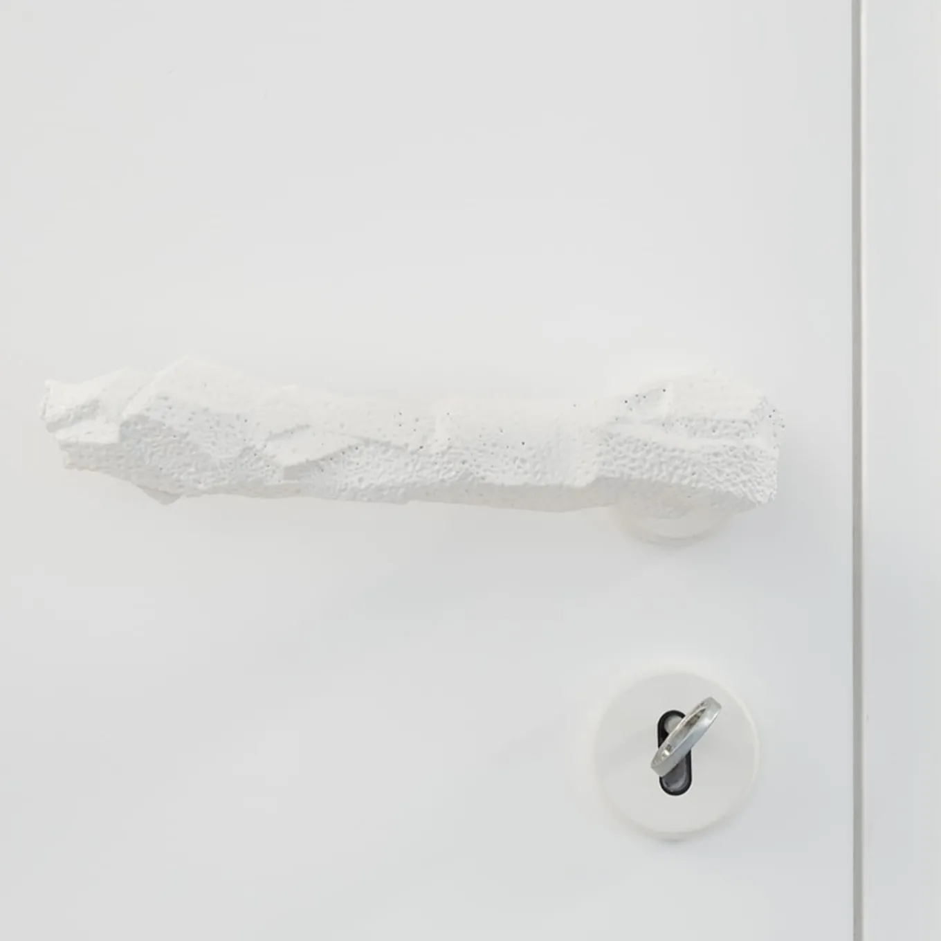 This astonishing, lava stone-shaped door handle will make an original and unexpectedly sophisticated accent in a contemporary interior. Timeless and versatile in its total-white look, it is handcrafted of brass. It belongs to the Lavica Collection of striking door handles designed by Nicole Valenti.