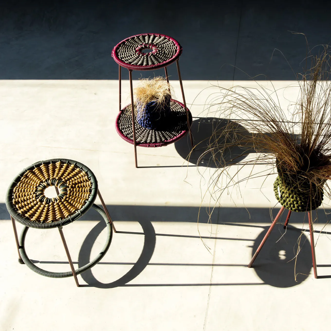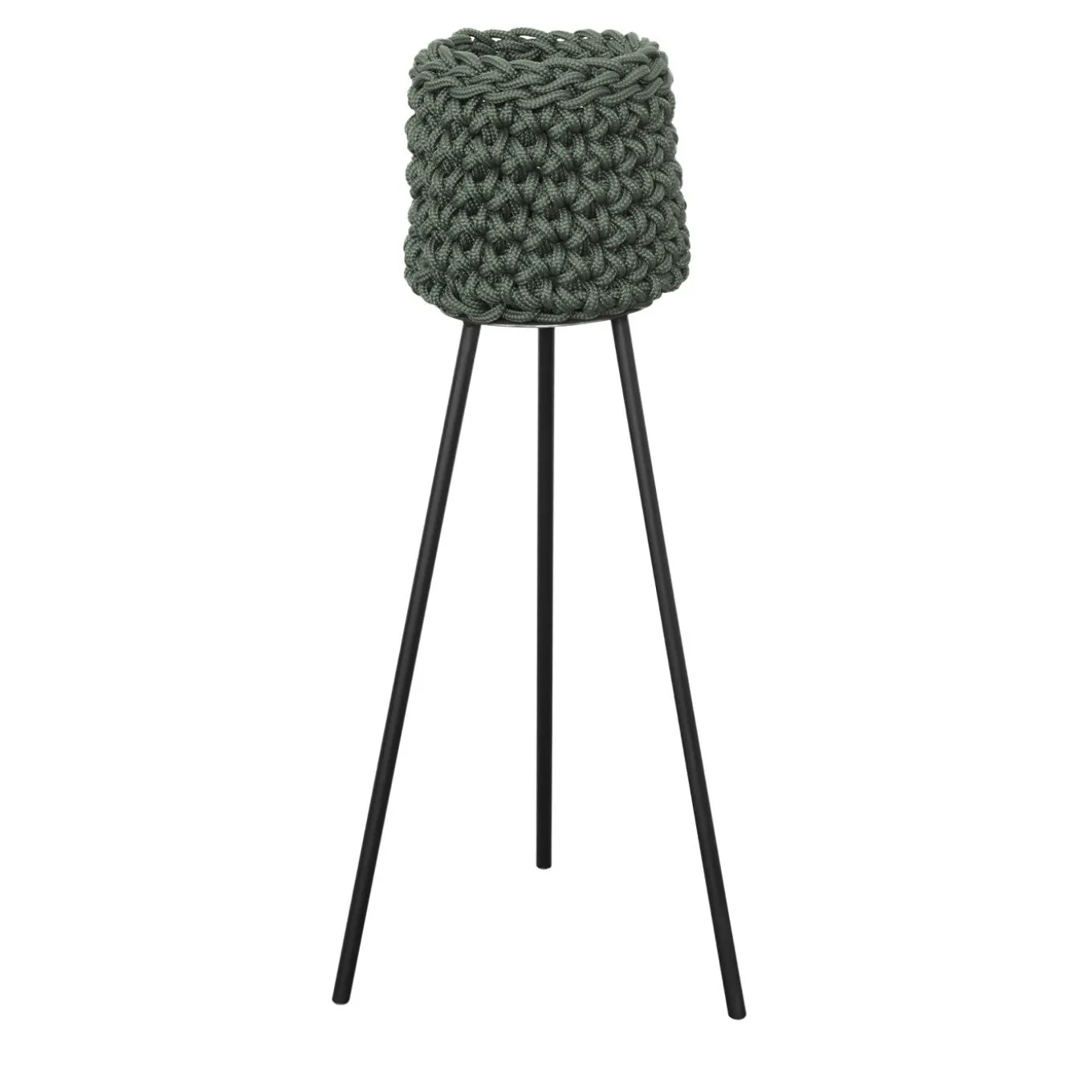 Designed to enliven any nook with lush plants, this potholder stand is a simple yet refined accent piece that will complete any indoor and outdoor decor. Part of Le Rossette Collection, it features a black-powder-coated iron structure with three slanted legs and a basket hand-woven of olive green water-resistant, polypropylene technical rope (Ø 12mm). Available in different sizes and a wide range of colors, please ask the Concierge for further details.
