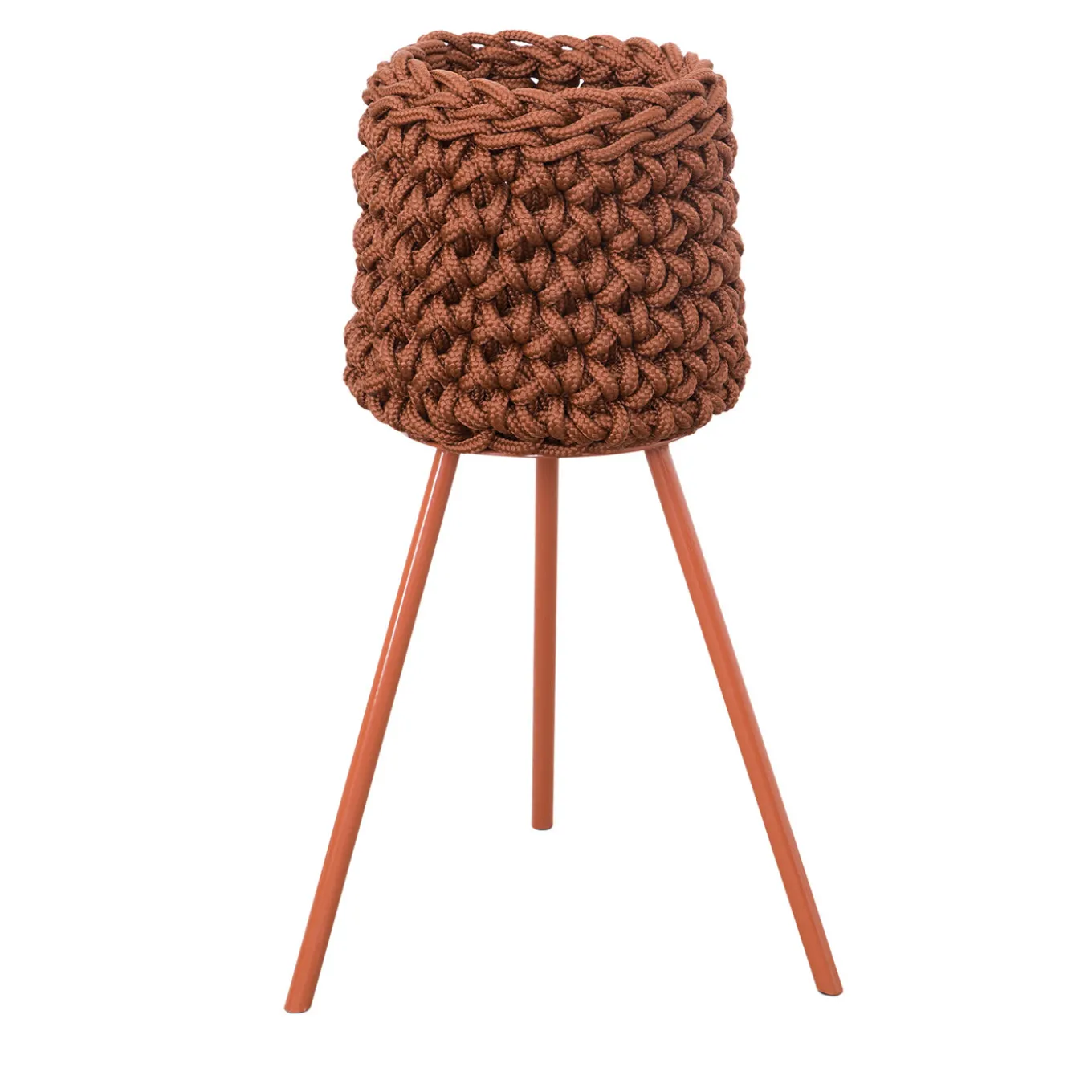 Sitting on a tripod base and structure of rust powder-coated iron, this potholder stand features a unique woven basket entirely handcrafted using water-resistant polypropylene technical rope (Ø 12mm) in a matching hue. This original piece belongs to the Le Rossette Collection and is available in several sizes, heights, and colors that can be mixed and matched to create an elegant display, please contact the Concierge for details.