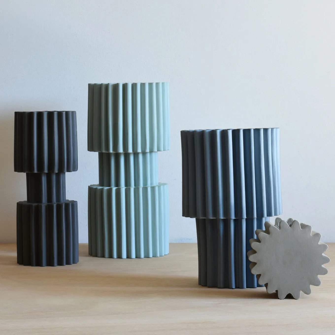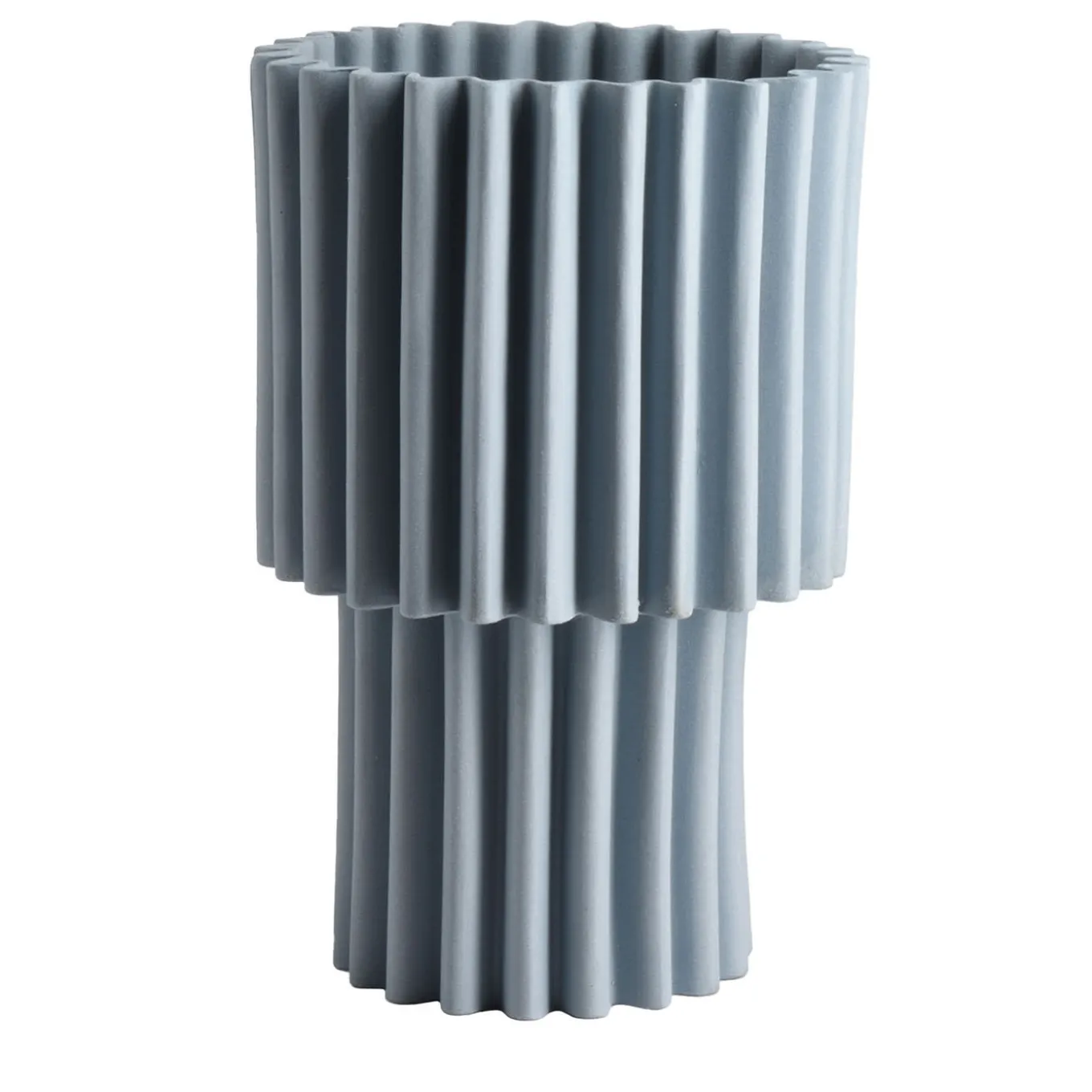 Part of the Le Torri Collection, this cerulean-blue vase is a sophisticated earthenware design drawing inspiration from towers’ stately volumes. An intense wavy design shapes its silhouette, resulting in a captivating interplay between lights and shadows that further underlines its sculptural character. The piece takes shape in an artisan mold before being finished by hand.