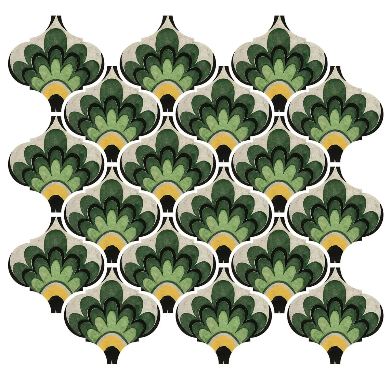 With its bold green tones and nature-inspired form, the Leaf tile composition makes an immediate statement. The layered leaf pattern, hand-painted in varying shades of green, flows across each uniquely shaped tile, creating a sense of movement. Warm yellow accents break up the lush green, adding depth to the matte gray background. Crafted for those who love dynamic, organic designs, the set includes 75 tiles per square meter. Price is per square meter. For additional details, kindly reach out to the Concierge.