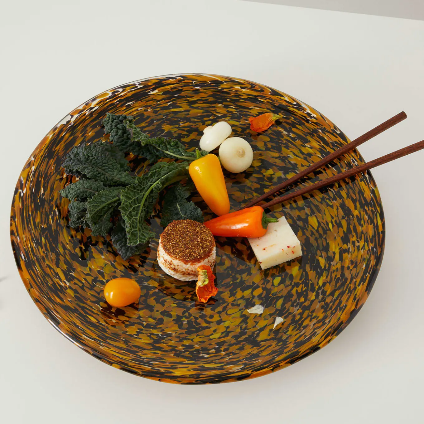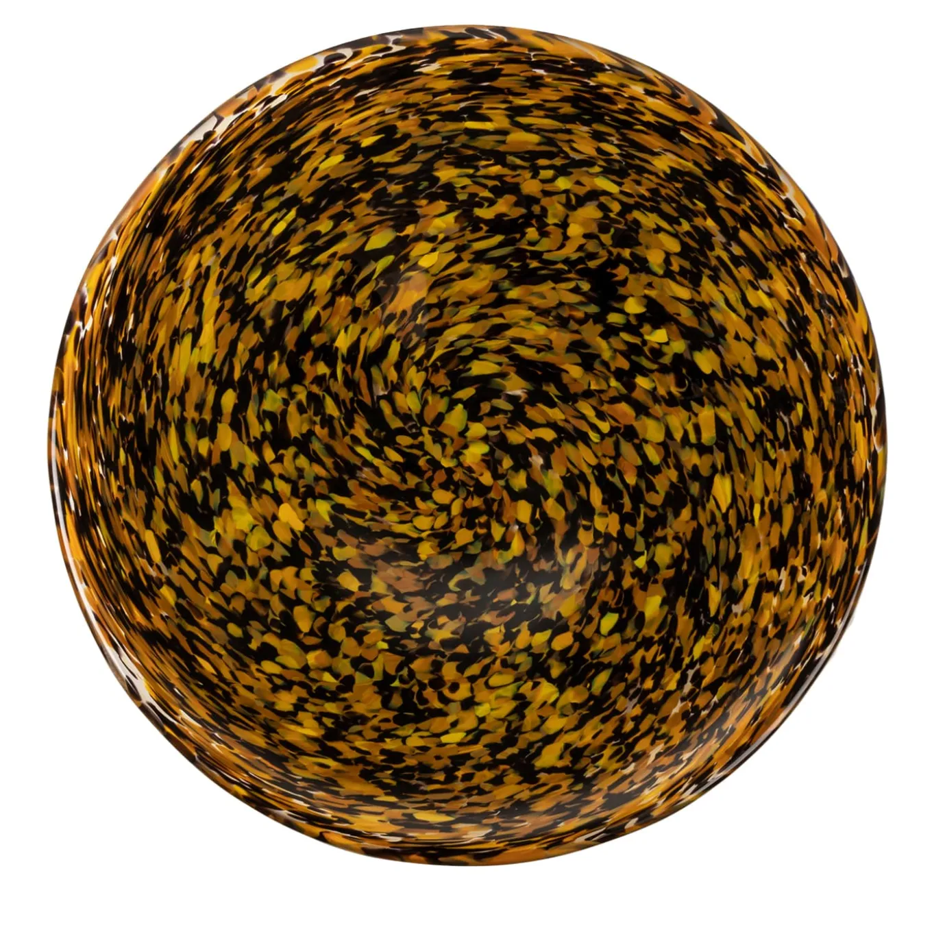 This uniquely crafted piece showcases a captivating pattern of warm browns and amber hues, capturing the essence of contemporary Italian glass artistry. The centerpiece’s depth and richness invite a comforting atmosphere, while its vibrant accents of amber inject a lively touch. Leopardo centerpiece embodies an elegance that harmonizes seamlessly with a variety of décor styles. Designed to contrast minimalistic shapes with striking maximalist patterns, this product serves not only as a functional item but also as a breathtaking decor element. Every piece is unique, due to handcrafting slight changes may occur.
