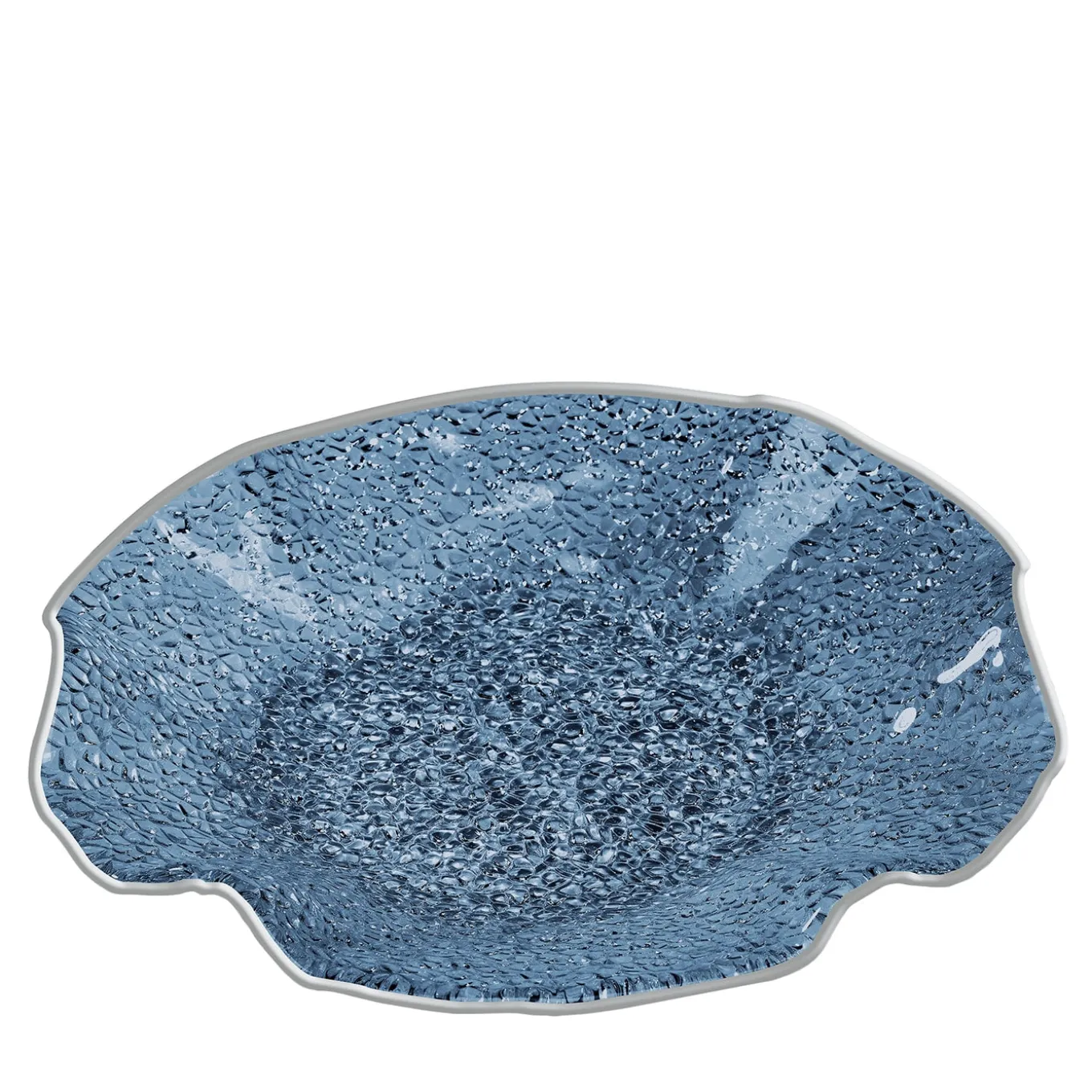 The Lirica Glass with Silver Decoration Scalloped Centerpiece presents an exquisite addition to any tabletop setting. This piece is meticulously decorated with a shimmering silver finish, reflecting elegance and style. The scalloped design adds a sophisticated touch, allowing this piece to function as a striking decorative element.