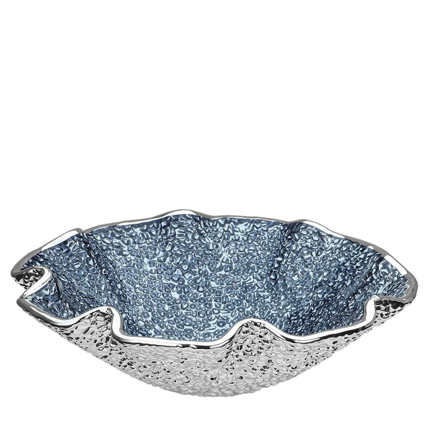 This exquisite piece features a charming scalloped edge, meticulously designed to capture attention and enhance any tabletop display. It provides ample space for serving, showcasing floral arrangements, or holding decorative objects. Crafted from high-quality glass, the centerpiece showcases a stunning decoration that adds a touch of luxury. Its intricate texture reflects light beautifully, creating an enchanting ambiance in any setting. Ideal for formal occasions or casual gatherings, it effortlessly complements a variety of interior styles while serving as a striking focal point in any décor.