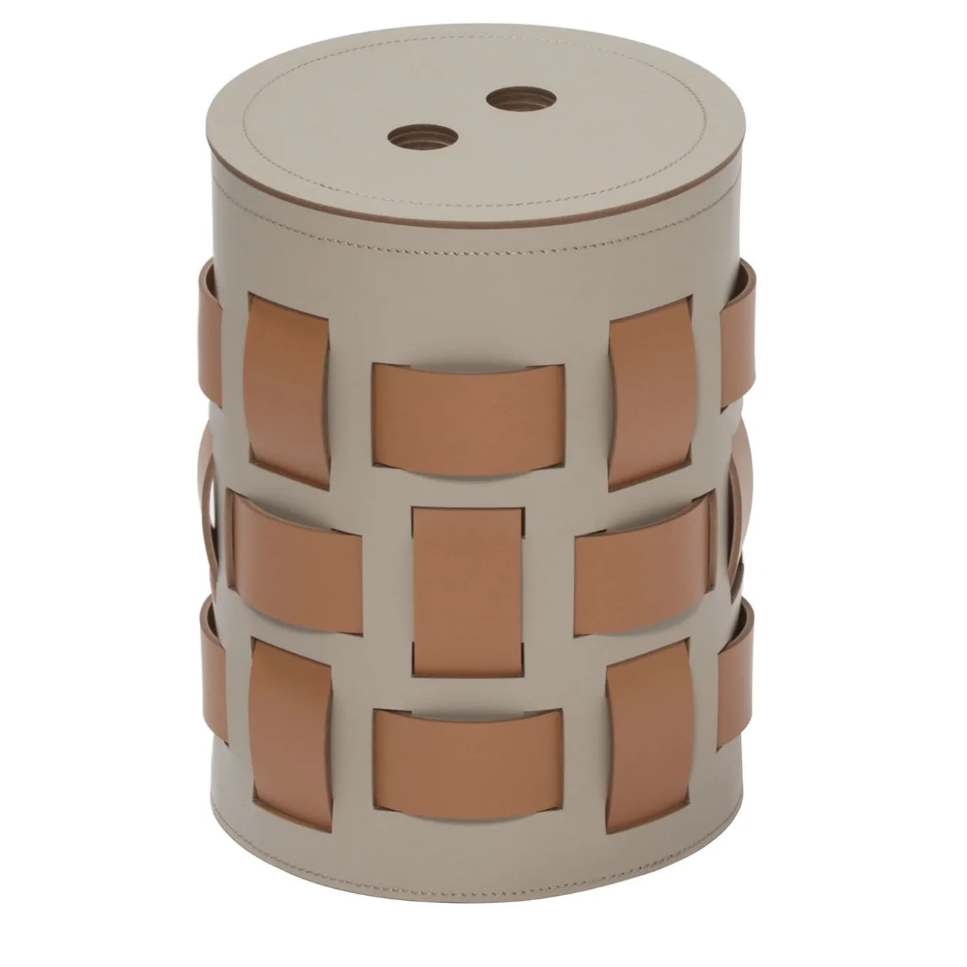 The Lisbona baskets’ design comes from the variation of a classic weave with vertical and horizontal bands that create a mosaic effect. Finest regenerated reinforced leather structure with water-resistant and UV-resistant finish. Ideal for laundry, towels, magazines or everyday objects. Fit for both indoor and outdoor use. Non-slip waterproof rubber base underneath. Other colors are available. Please ask Concierge for details.