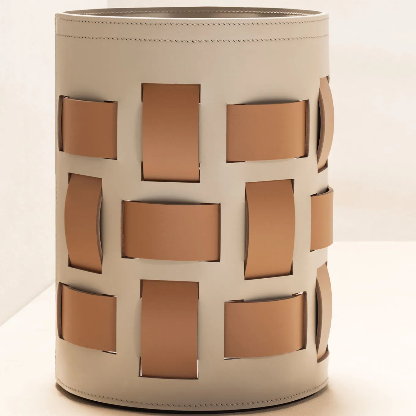 The Lisbona baskets’ design comes from the variation of a classic weave with vertical and horizontal bands that create a mosaic effect. Finest regenerated reinforced leather structure with water-resistant and UV-resistant finish. Ideal for laundry, towels, magazines or everyday objects. Fit for both indoor and outdoor use. Non-slip waterproof rubber base underneath. Other colors are available. Please ask Concierge for details.