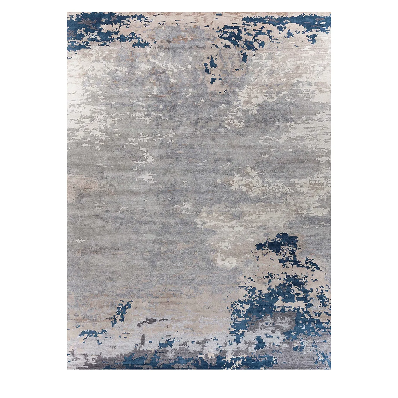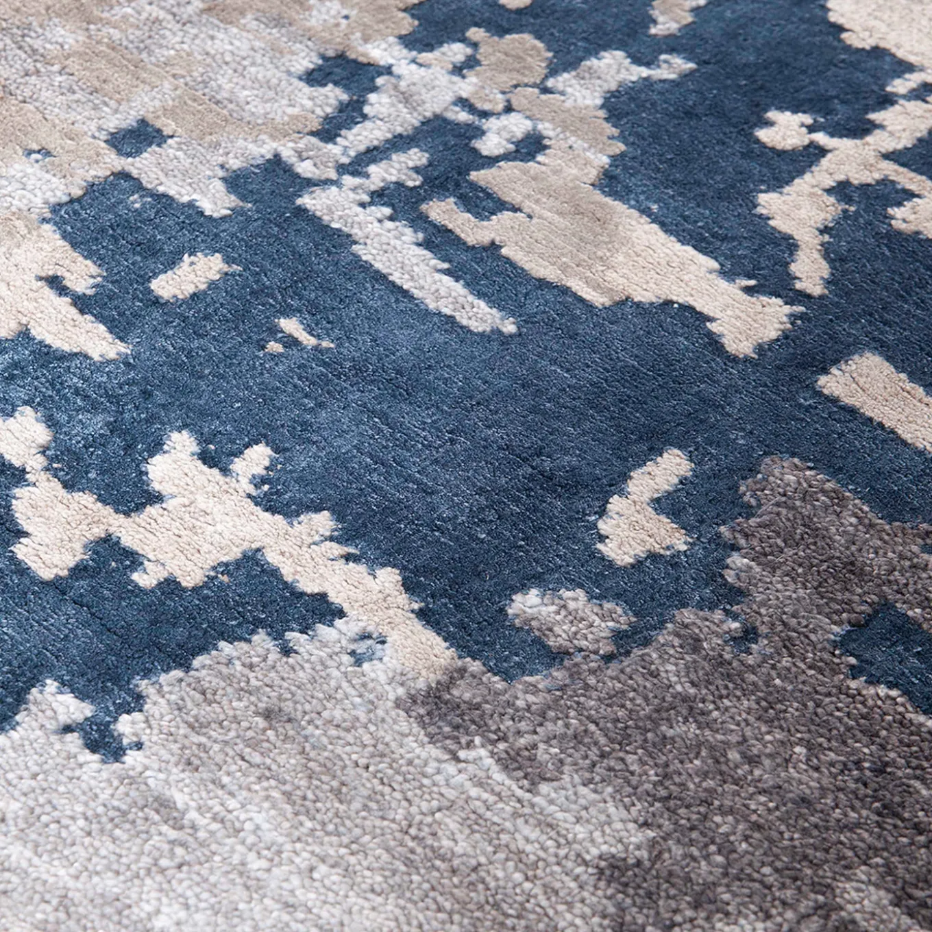 The Loft L170D rug features a contemporary abstract design with subtle oriental influences, presenting a sophisticated blend of muted tones accented by deep blue highlights. Hand-knotted in India, this rug combines expert craftsmanship with a luxurious texture, offering an elegant addition to medium and large spaces. Part of the Loft collection, it balances modern aesthetic appeal with timeless pattern variation, suitable for diverse interior styles. Available in various sizes, designs, and colors, allowing for customization to suit individual tastes and needs – for further information please contact the concierge.