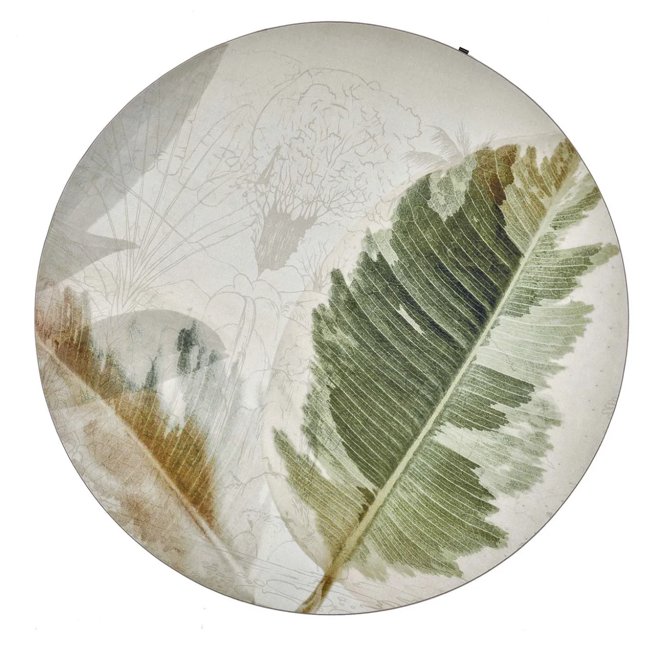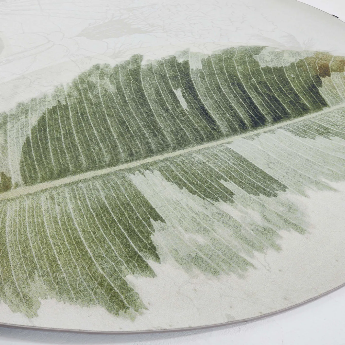 The Lucien rug features a striking design of oversized tropical leaves that create an impactful yet balanced visual presence. The crisp outlines of the leaves are softened by watercolor-style shading, adding a sense of lightness and fluidity to the piece. This rug brings a stylized natural element and a harmonious atmosphere to any interior space where it is placed.