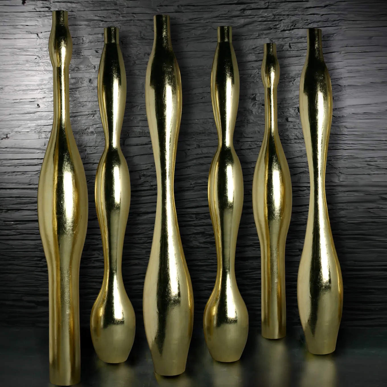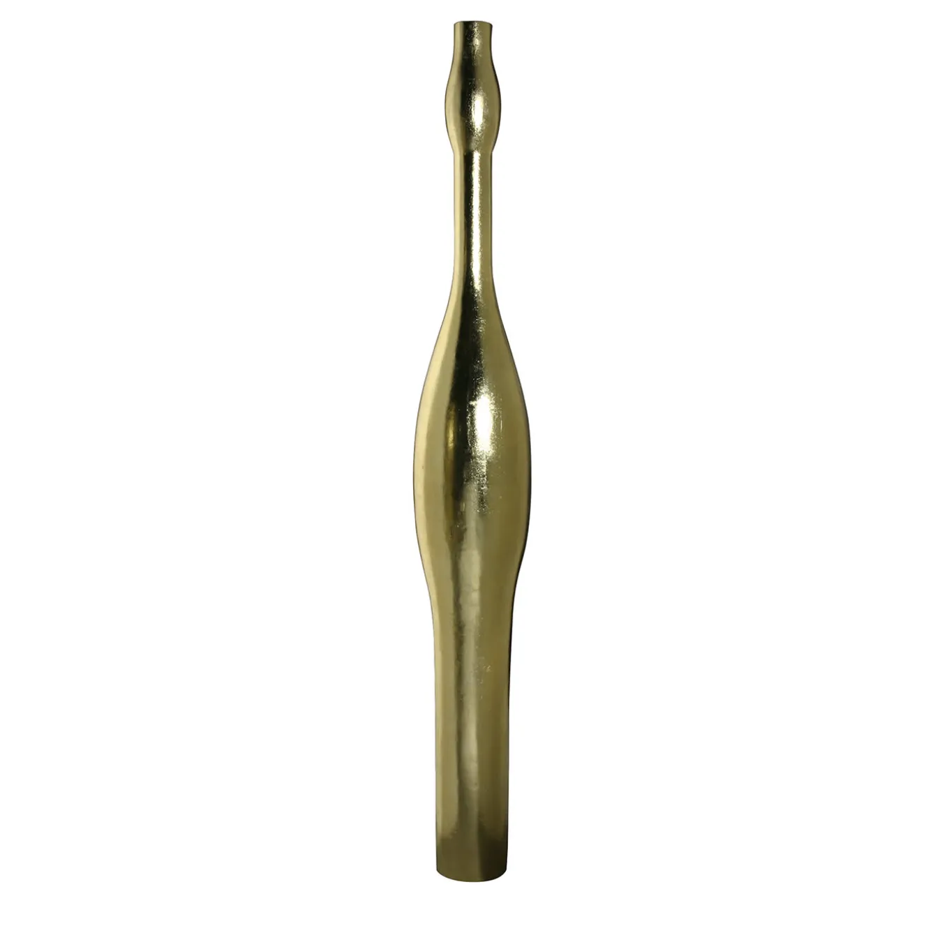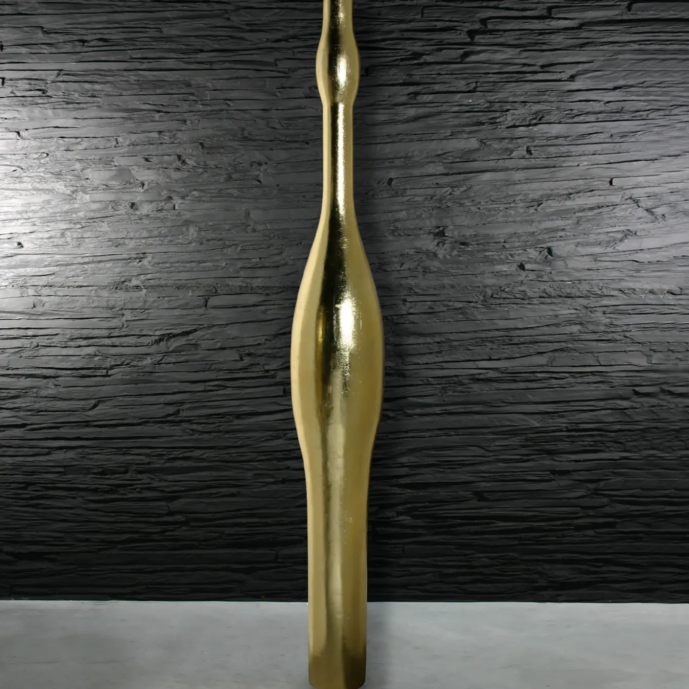 Evoking the shape of a female body, this statement-making vase boasts a tall silhouette (231cm) whose sinuous lines are enhanced by prized gold leaf. A collector’s piece made entirely of resin, this vase will bring interest and shimmering elegance to a modern living room, lounge area, or entryway in both residential and commercial interiors.