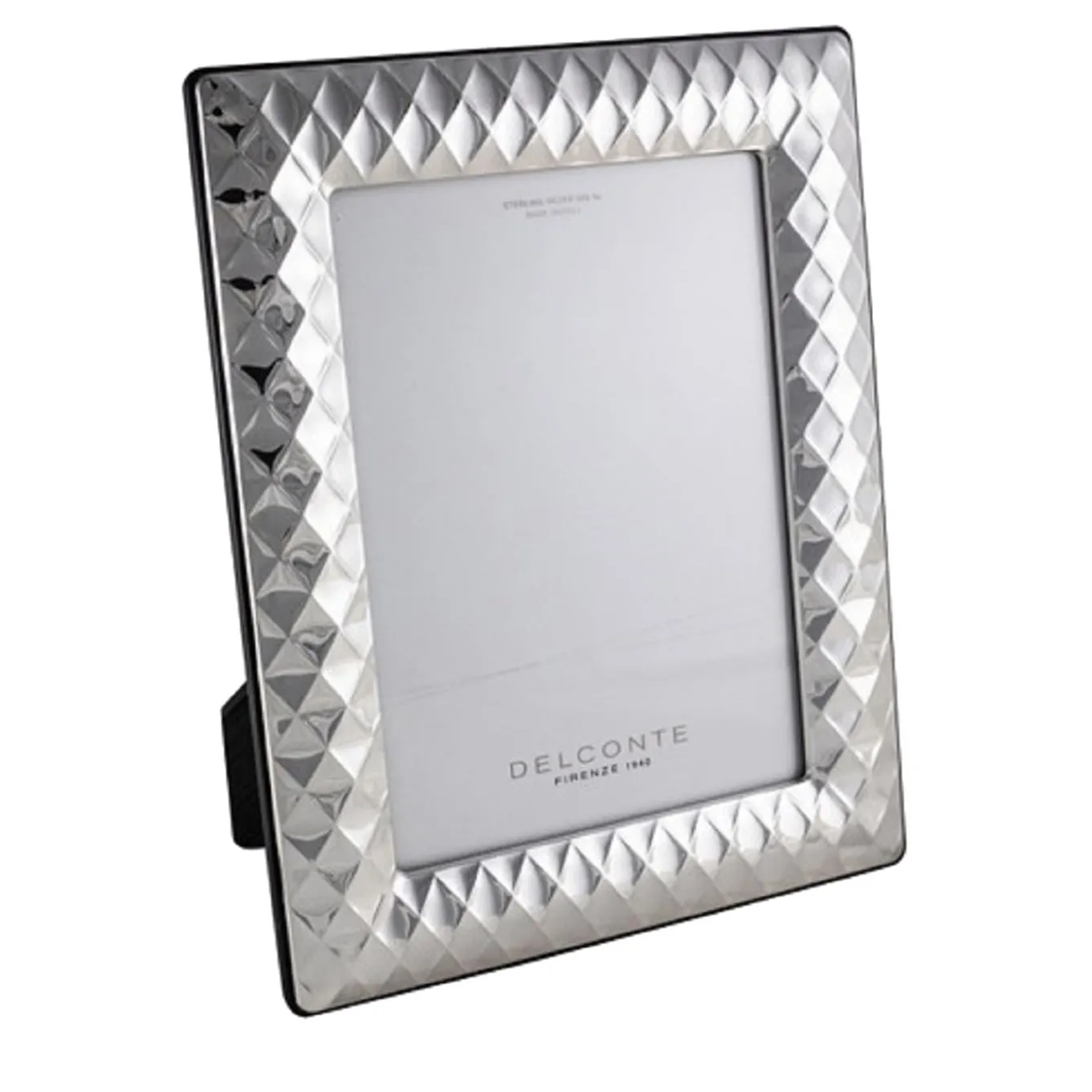 Exuding a bold character and refined opulence, this prized frame in sterling silver 925 (3.5cm wide) will surround unforgettable memories with unparalleled class. A deft diamond pattern gives striking textural quality to the sides while creating a multi-faceted surface capable of mesmerizing light reflections. The back is reinforced with a solid wenge layer, ensuring a secure holding of the photo (18x24cm) housed within. Size variants available (10×15 cm; 13×18 cm), check pricing with the Concierge.