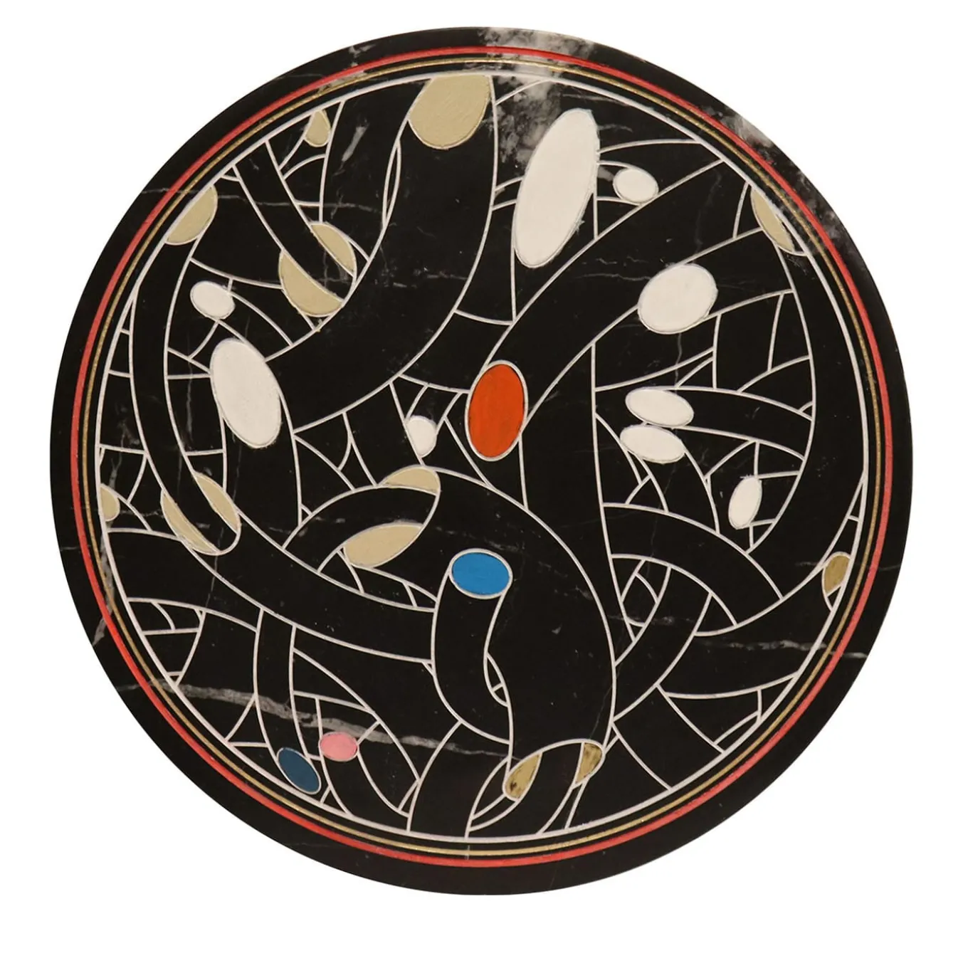 This collection showcases round or oval plates, suitable for serving or hanging, where the signature graphics are intricately engraved into marble and then meticulously hand-painted. Each piece reflects a blend of artistic flair and craftsmanship. Carefully crafted in Italy, this plate stands as both functional item and work of art, perfect for enhancing any space with its beauty and individuality.