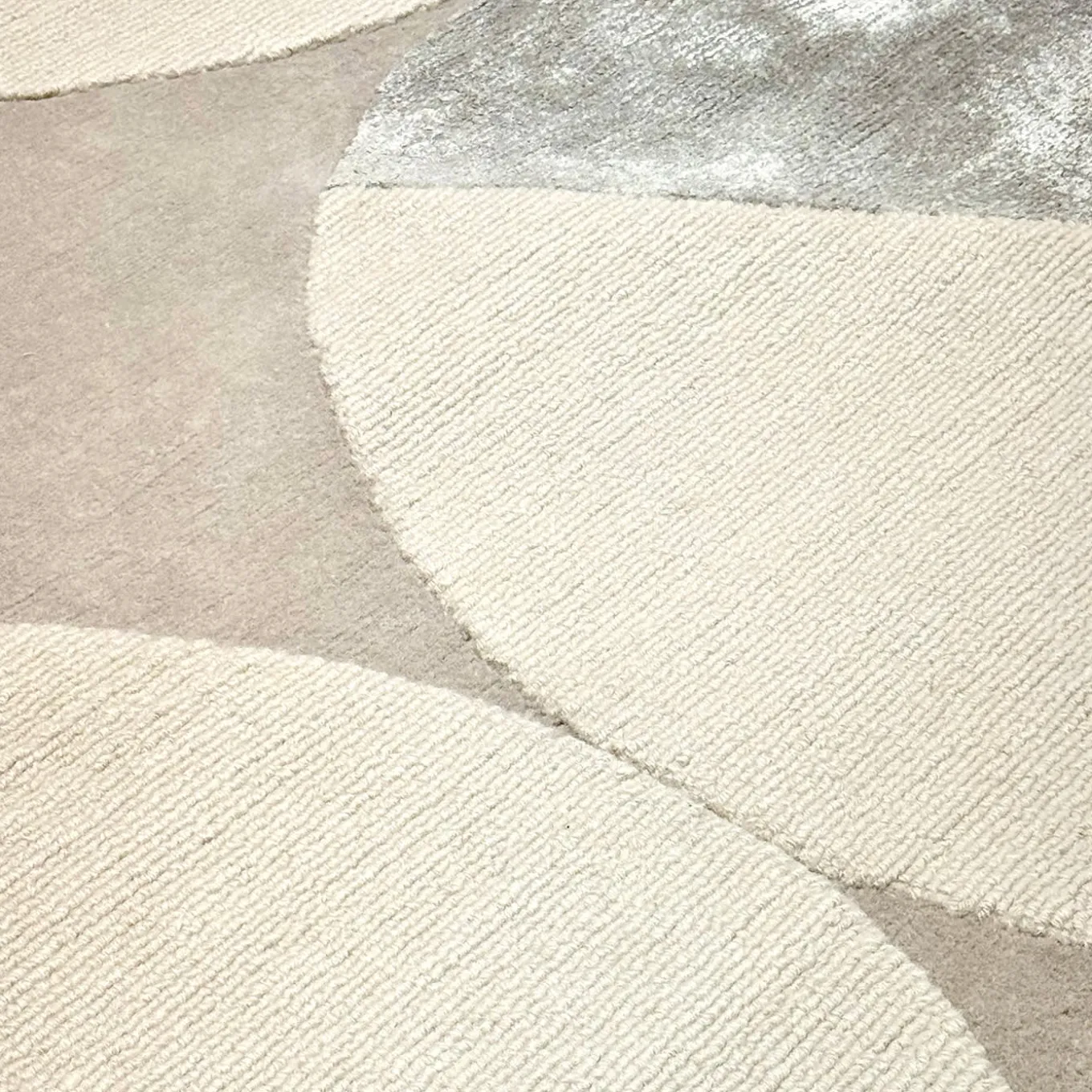 The Maru rug—named after the Japanese word for “circle”—explores the deconstruction of this perfect shape. The designer fragments it, making it more relatable, as imperfection is inherently human. Randomly juxtaposed forms create an illusion of rotational movement, while warm beige tones enhance its minimalist elegance. Part of Illulian’s Limited Edition, it is hand-knotted and carded. This Gold 100 edition, in wool and silk (152,000 knots/m²), is also available in Platinum 120. Made in Nepal.