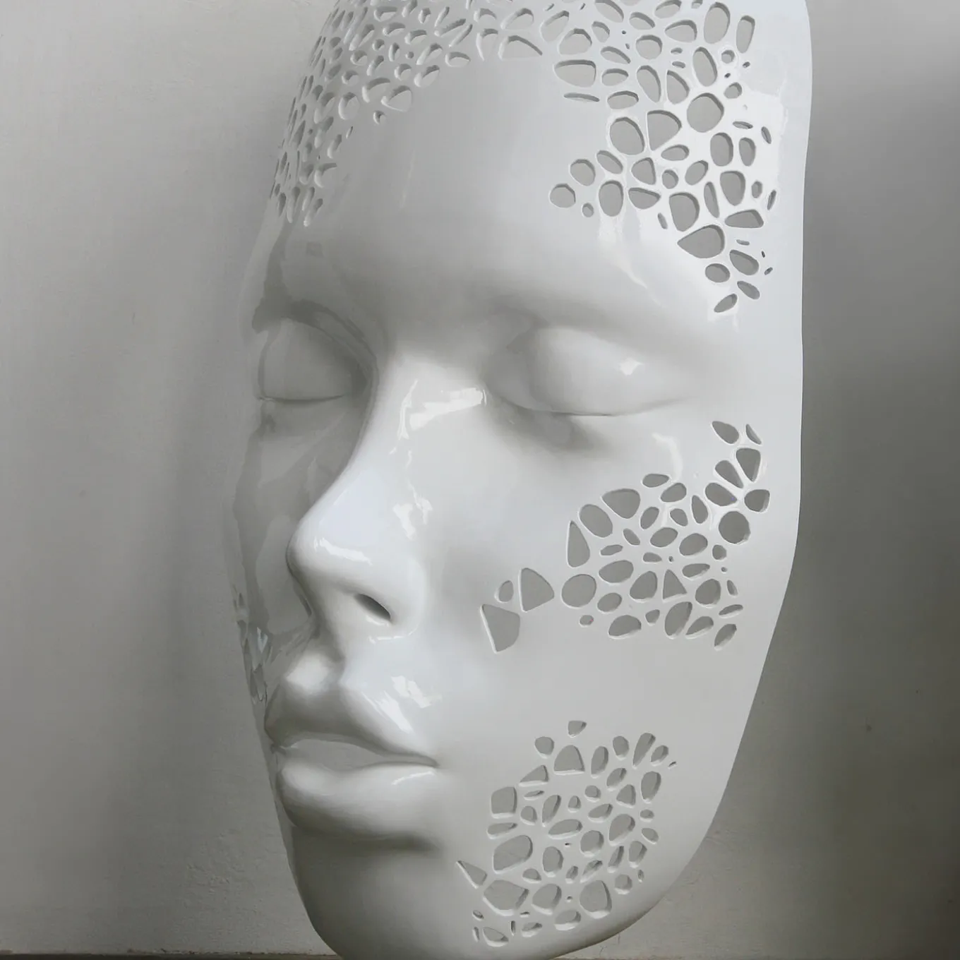 Inspired by the delicate interplay of love and conflict, “Mascherati Woman” merges advanced 3D printing with Italian craftsmanship. Limited to 9 pieces, this unique white sculpture, achieved thanks to intricate sandblasting, plastering, and hand-painting, captures moments of emotional revelation. Celebrating “Made in Italy,” this artwork invites viewers to interpret a couple’s intimate dance or a solitary journey of self-discovery—a captivating fusion of technology and artistry. It can be displayed on pedestal or as a free-standing piece.