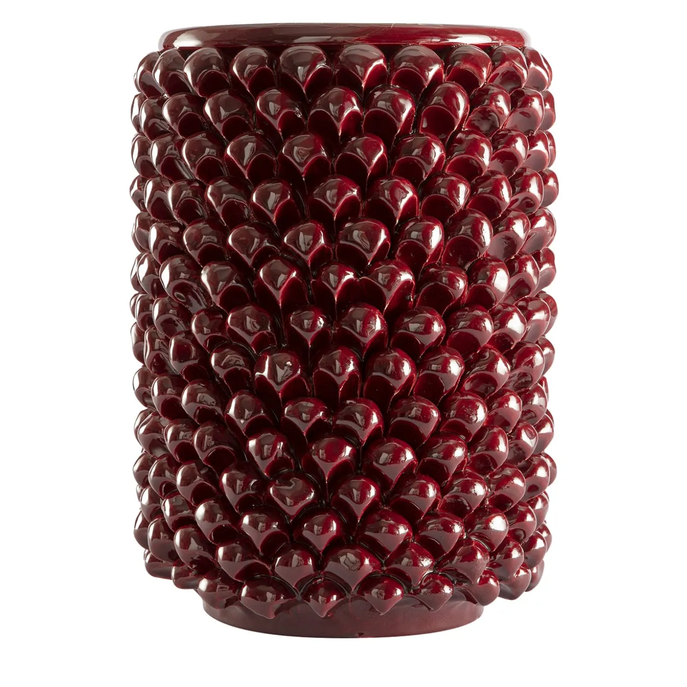This bordeaux cylindrical vase is a sensory journey. The soft white clay, shaped with care, the water that breathes life into the material, and the vibrant pigments make each creation unique. Crafted by hand, these ceramic forms preserve and radiate a centuries-old cultural heritage, an enduring symbol of ceramic tradition. Designed to hold fresh flowers, this vase brings timeless elegance to any space.