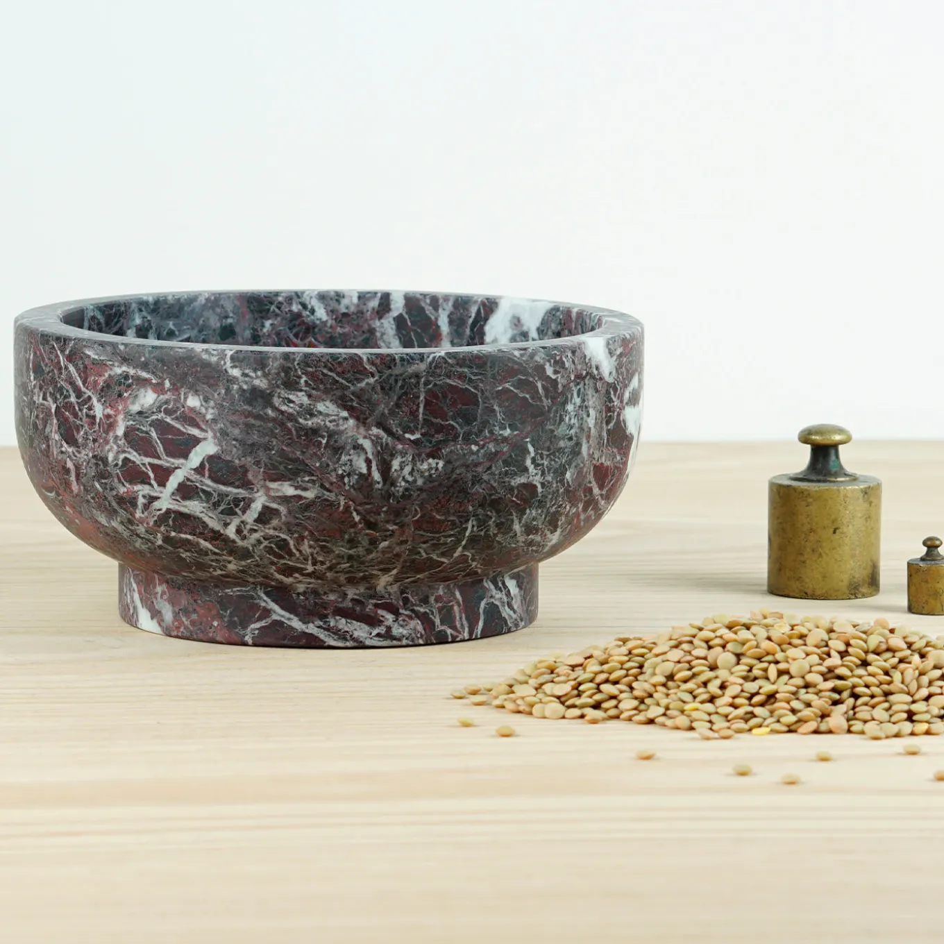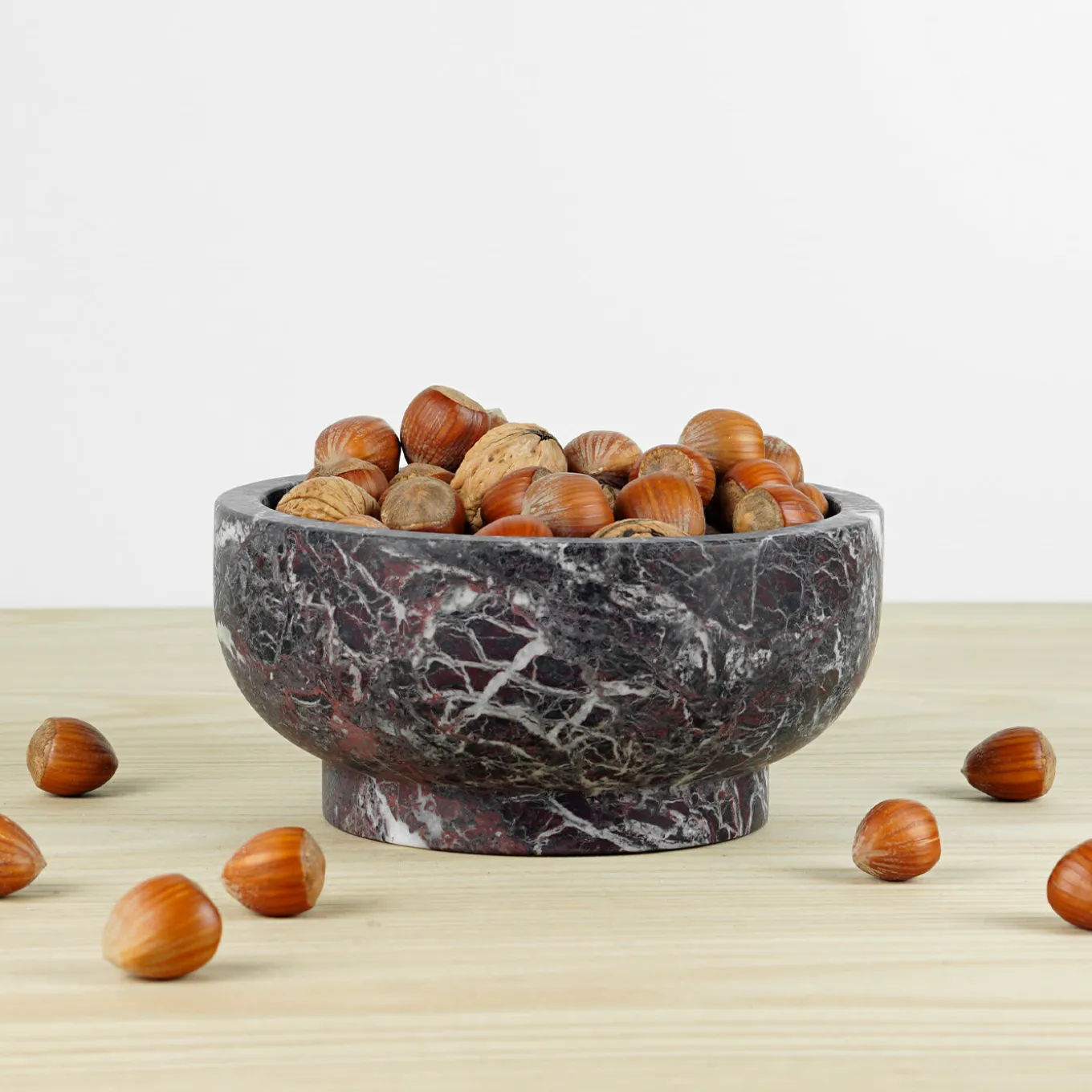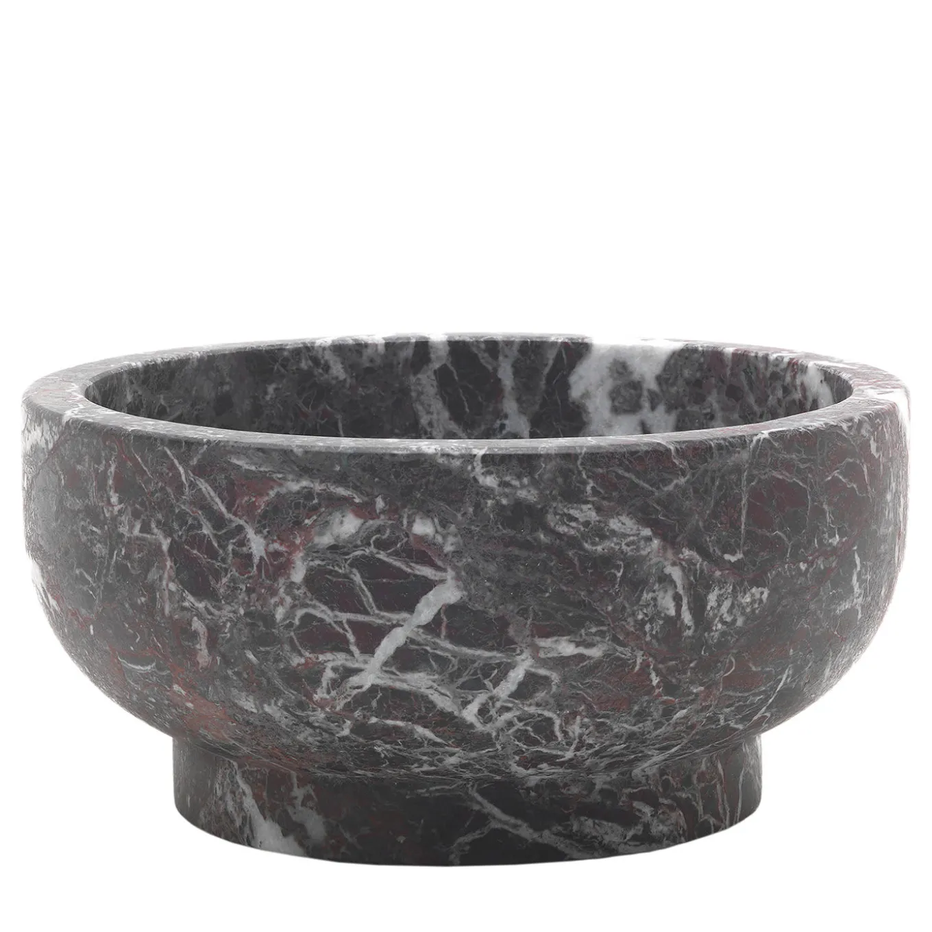 The inherent charm and eccentric veining of red Levanto marble lend striking quality to this centerpiece, whose minimalist shape discloses a secret ancestral flair that will enrich stellar table settings as well as private contemporary decors. The footed base sustains the bulging and thick recipient in an impeccable harmony of proportions that suggests the natural link between nature, food, and people. This precious design is ideal as a soup plate or as a fruit salad bowl. Please note that marbles and stones are natural materials and they can differ also if coming from the same quarry or the same block. The product shown may differ from purchased items. Every piece is unique.