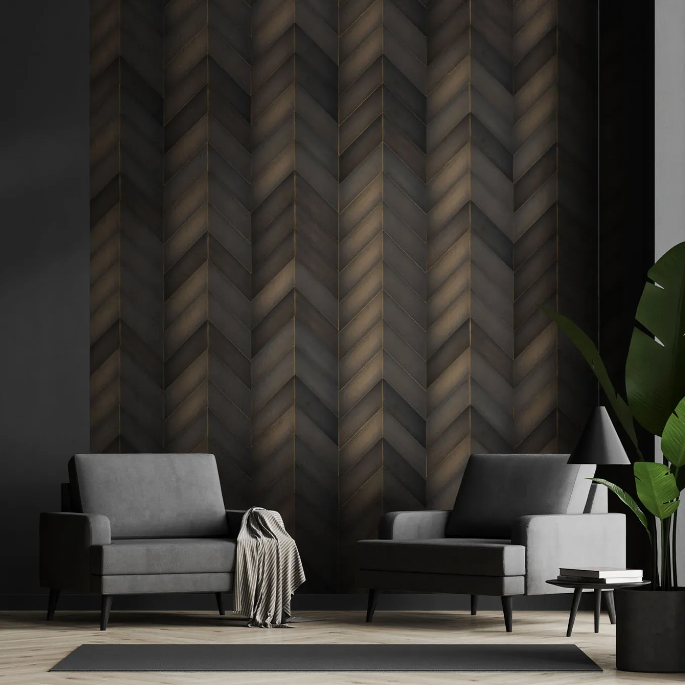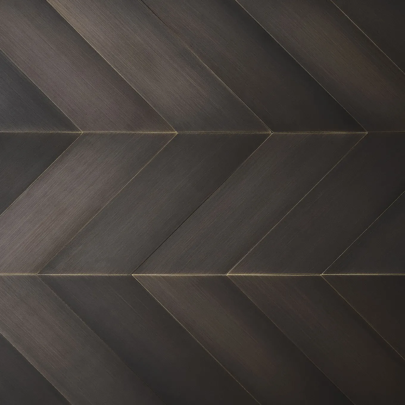 This set of ten brass tiles offered in a dark burnished finish makes for a superb solution for infusing interiors with a sense of mysterious elegance. Part of the MetalSkin Collection crafted by master Venetian artisans, the tiles are an ode to contrasts with their neat and dark geometric pattern outlined by polished profiles for a design of timeless refinement. The price listed is for the set of 10 tiles. Product images show the different compositions that can be made. Contact the concierge for more information and details.