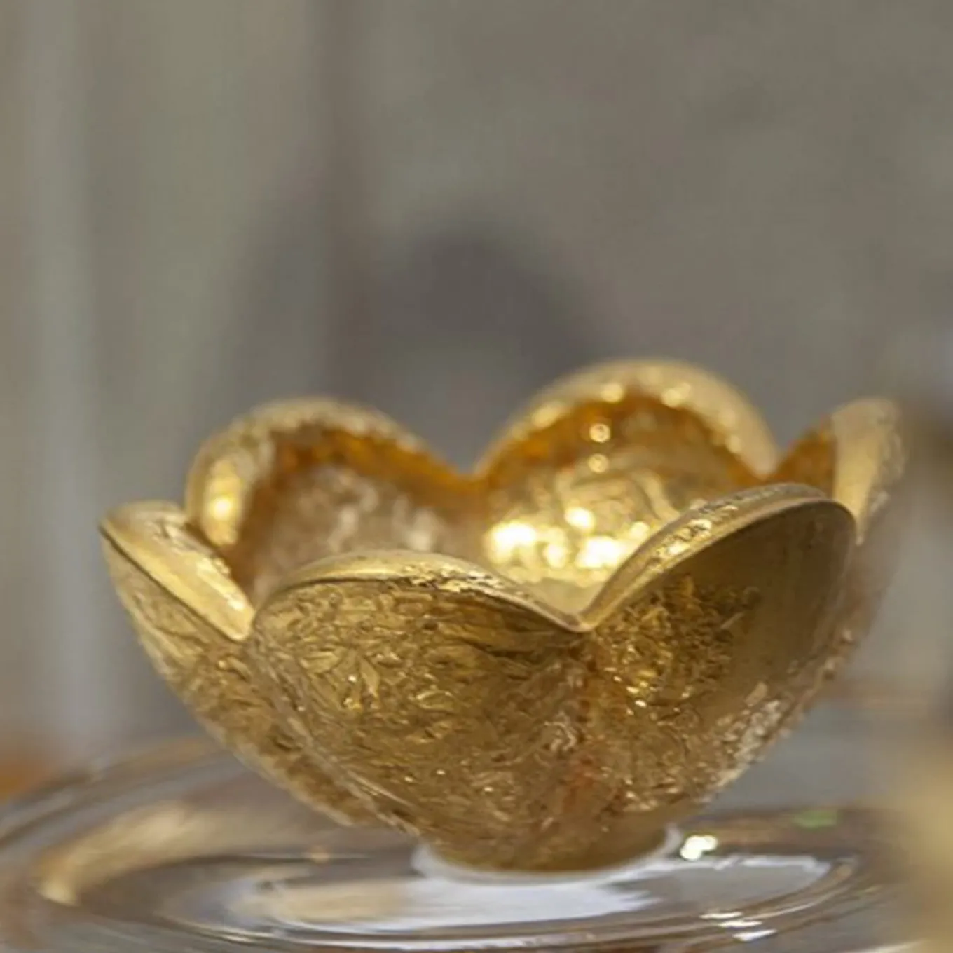 This elegant candy dish seamlessly combines artistic inspiration and practicality, offering a refined storage solution for sweets, trinkets, or jewelry. Its hand-blown glass body is complemented by a sculpted base that recalls Michelangelo’s “non finiti” technique, showcasing intricate textures and depth. Enhanced with hand-applied gold-leaf accents, this piece from the Capriccio Collection is a testament to timeless craftsmanship, adding artistic grandeur to any setting.