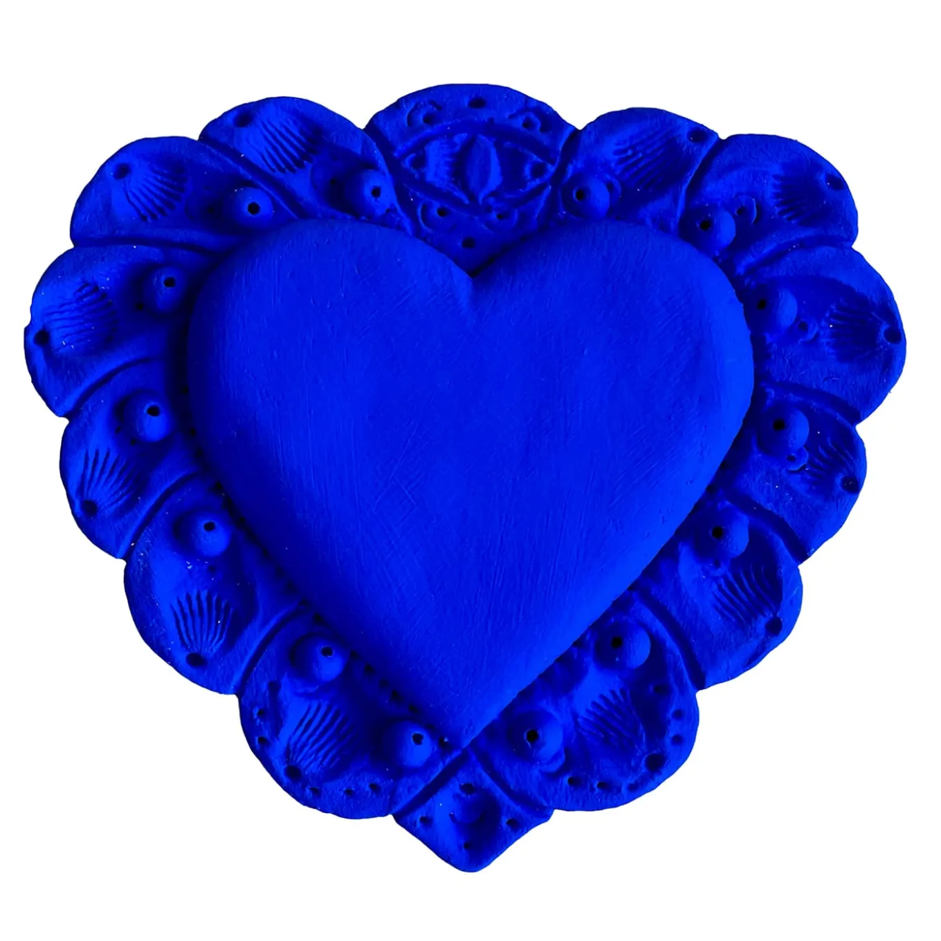 Milagros Sacred Heart Blue Plaster Wall Sculpture