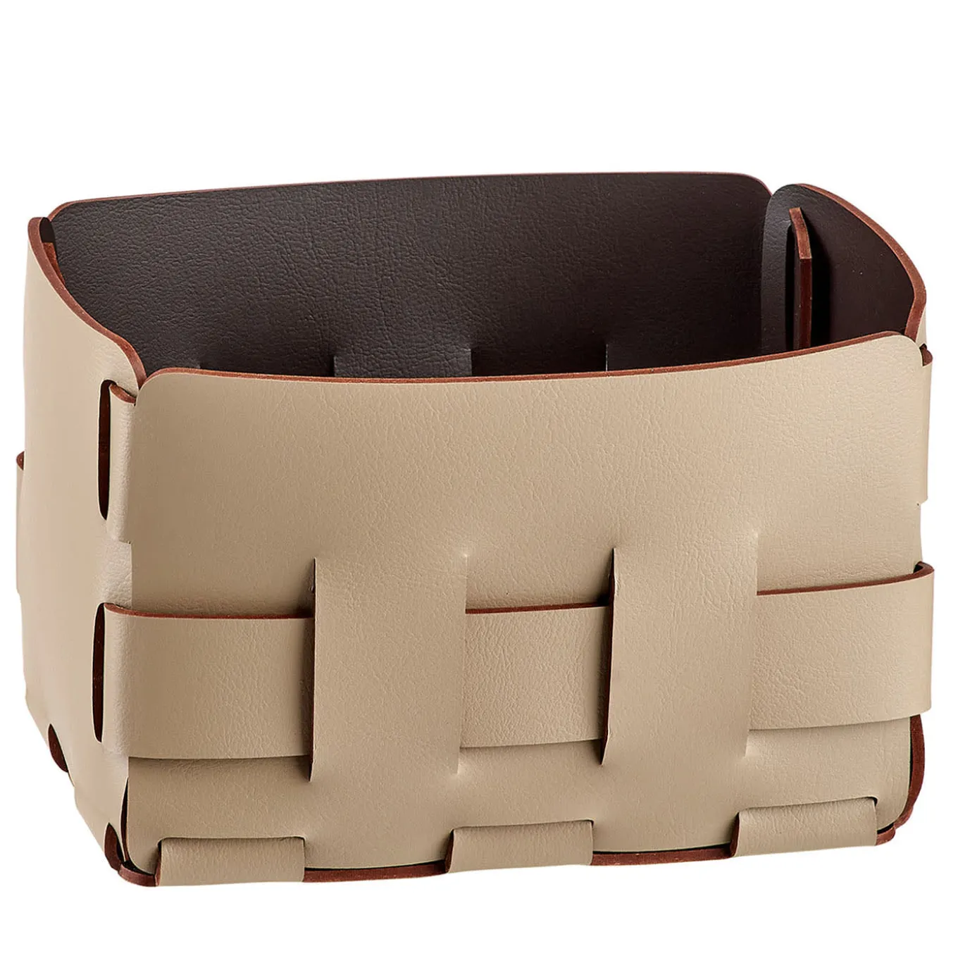 Defined by its exquisite wicker craftsmanship, this small rectangular basket by Ekaterina Borovkova is an essential addition to any interior space. Perfectly sized for versatile use, it elegantly organizes essentials from toiletries to office supplies. Presented in rich Cappuccino and chocolate hues, it includes a textile bag for added convenience. Ideal for those seeking both style and functionality, this basket effortlessly blends into any setting with its timeless design.