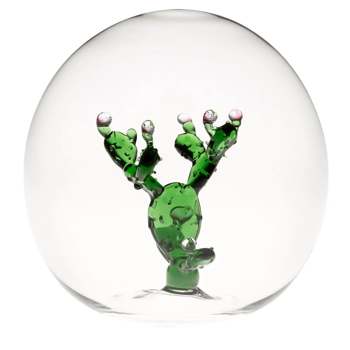 Part of a splendid collection that draws inspiration from Nature, it will bring the magic and calmness of a garden into a modern home. This sphere reminds of a natural oasis where the characters are flowers, cactus plants, fishes and parrots. Inspired by the details of nature, this sphere represents a variety of fauna and flora elements, encased in a hand-blown borosilicate glass bubble. The Mini Oasis Sphere collection is meticulously handcrafted by Venetian glass artisans.