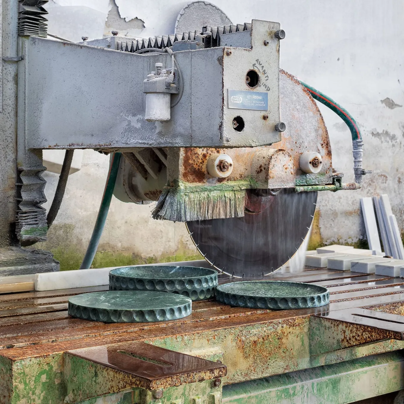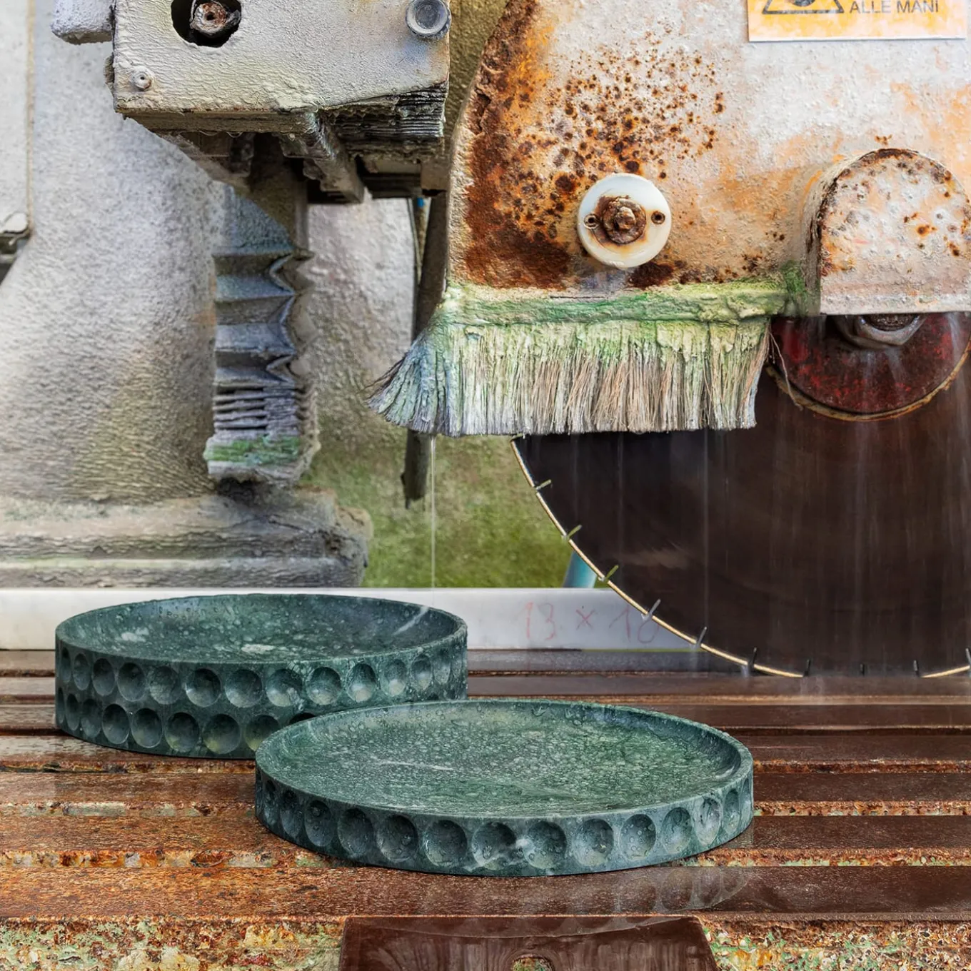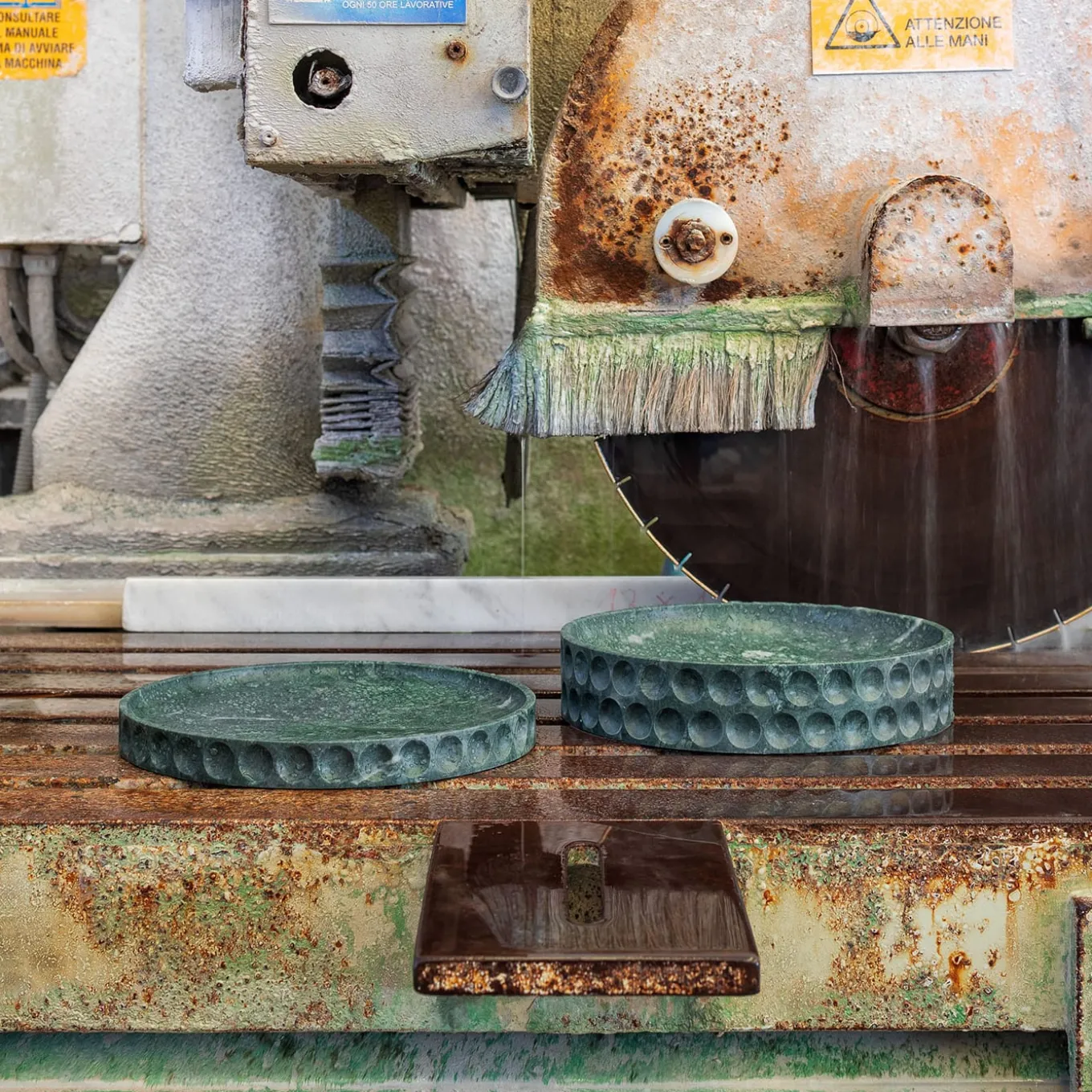 The Mirage collection comes from the monolithic materiality of stone. Shape and function coincide, creating an element without frills, which originates from subtracting materials. Full and empty spaces alternate with each other and create dissolving shades of light thanks to the juxtaposition of decorations. It’s a container for objects full of its surroundings reflected on its surface. This item has been part of the on display at until May 2023.