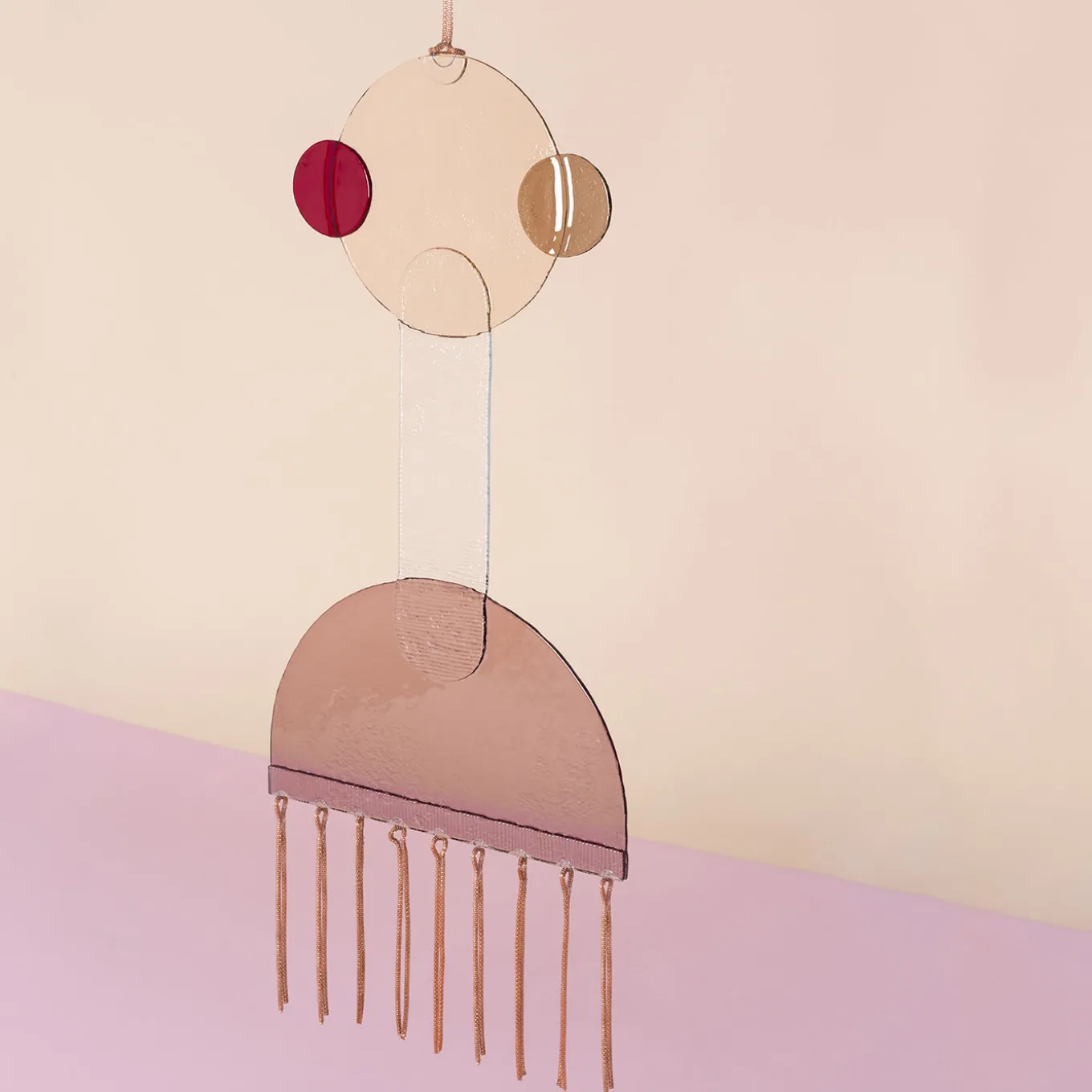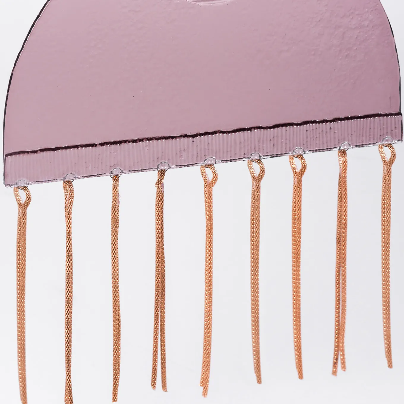 This unique Serena Confalonieri glass fusion and metal amulet speals of love through black magic symbolism. The object is in the form of a voodoo doll, in pink, transparent and earthy colours, and has steel chain decorations. Although seemingly fragile, the piece is extremely resistant, symbolising the strength of love.