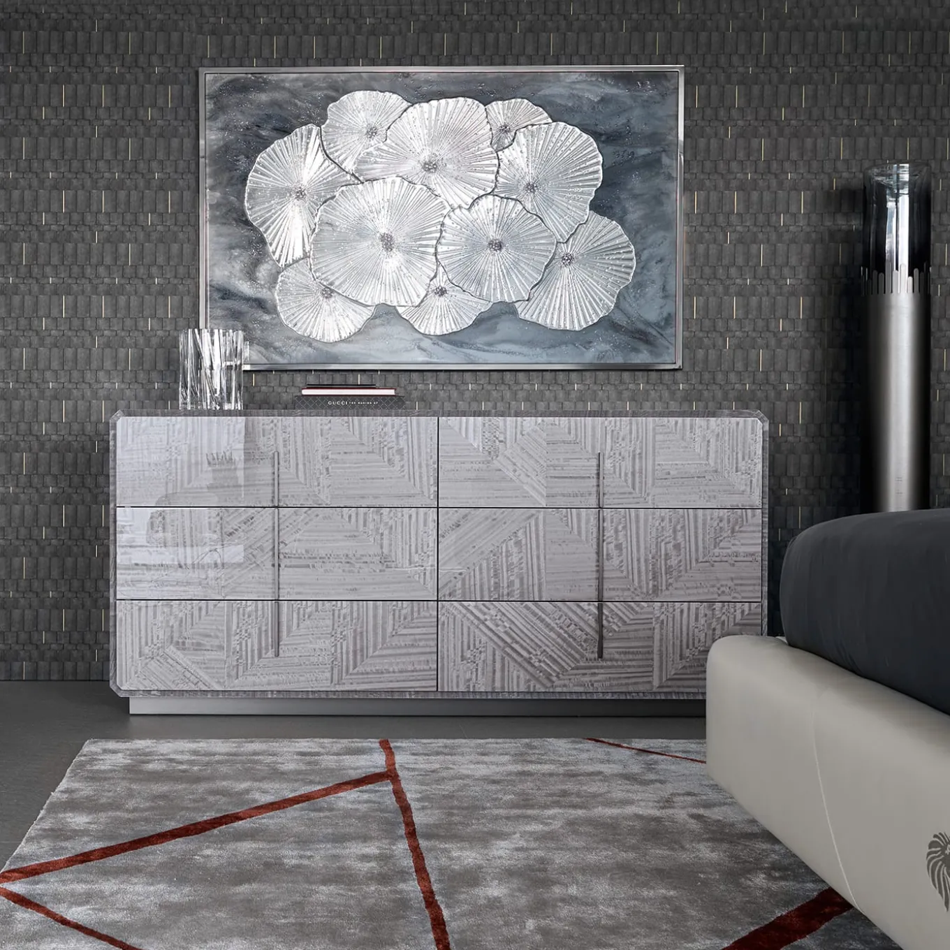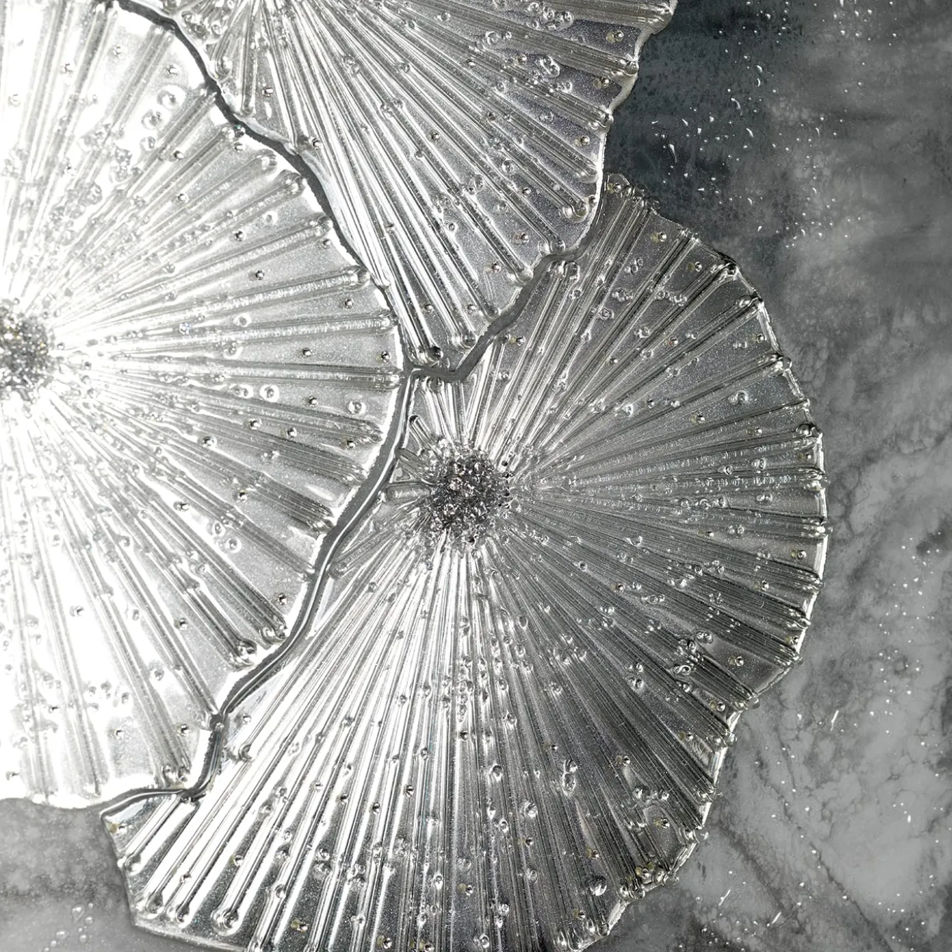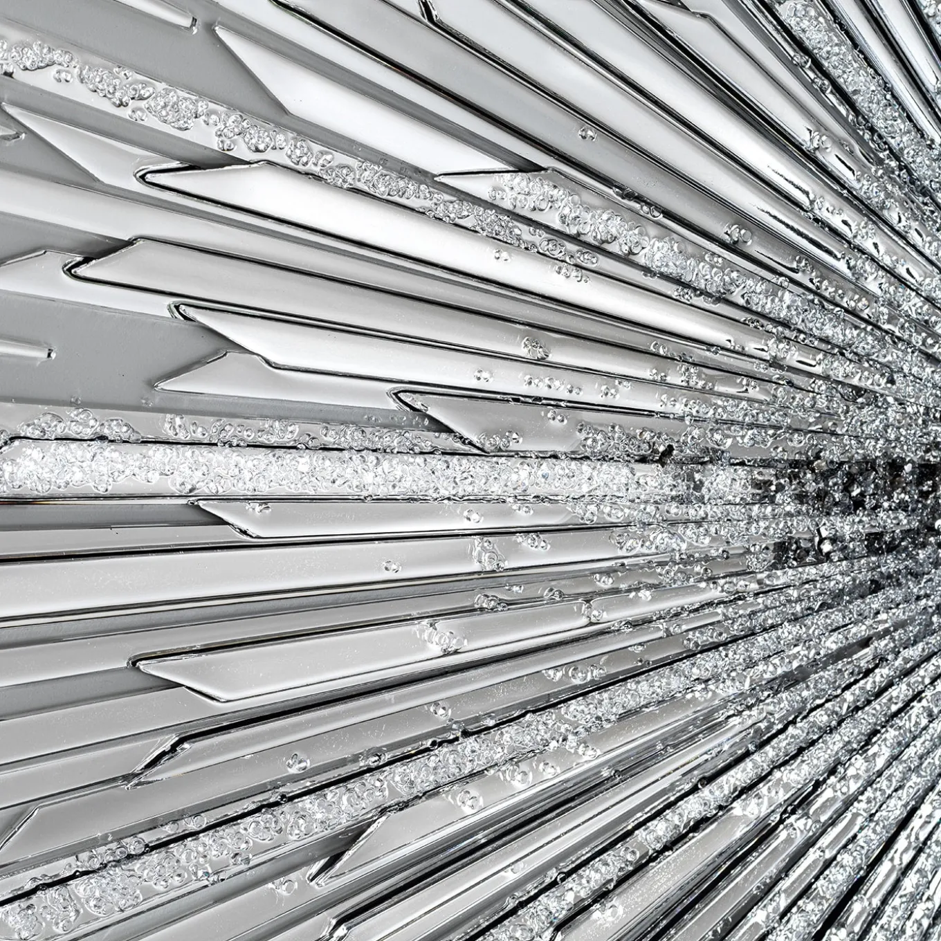 Discover this rectangular painting in a wooden structure with a stainless steel frame. Epoxy resin with UV protection base in combination with “Swarovski” crystals and hand-cut clear mirror glass.